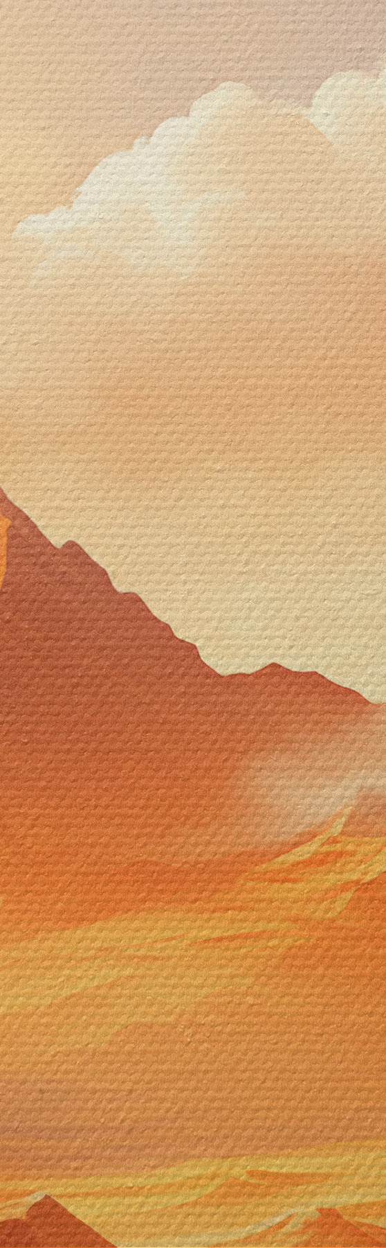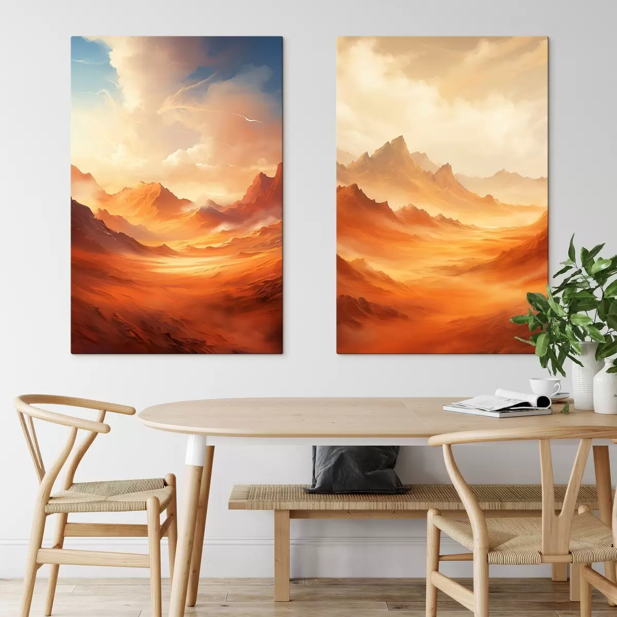 Vászonkép Hatalmas, narancssárga sivatagi táj, magas, sziklás hegyekkel, ködös, napsütötte égbolton, vékony felhőkkel. Nr m01122