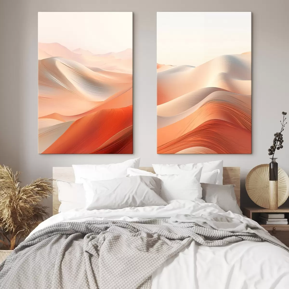 Vászonkép Absztrakt sivatagi táj, meleg narancssárga és fehér tónusú, hullámzó homokdűnékkel Nr m01123
