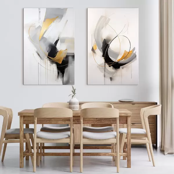 Vászonkép Absztrakt festmény sárga, fekete és fehér ecsetvonásokkal, dinamikus vonalakkal Nr m01125
