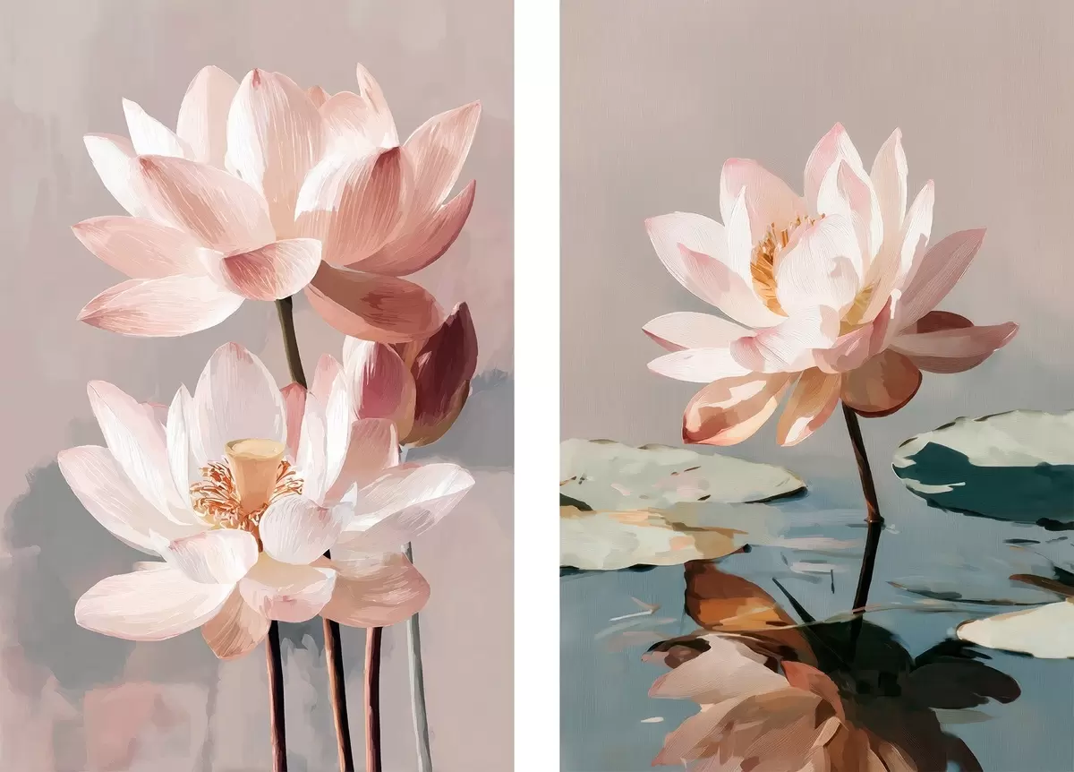 Vászonkép Finom rózsaszín lótuszok modern digitális festészeti stílusban Nr m01152