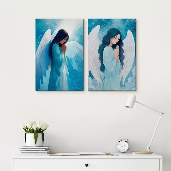 Vászonkép Modern szent művészet akvarell stílusban, kék ruhás őrangyal ábrázolásával Nr m01153