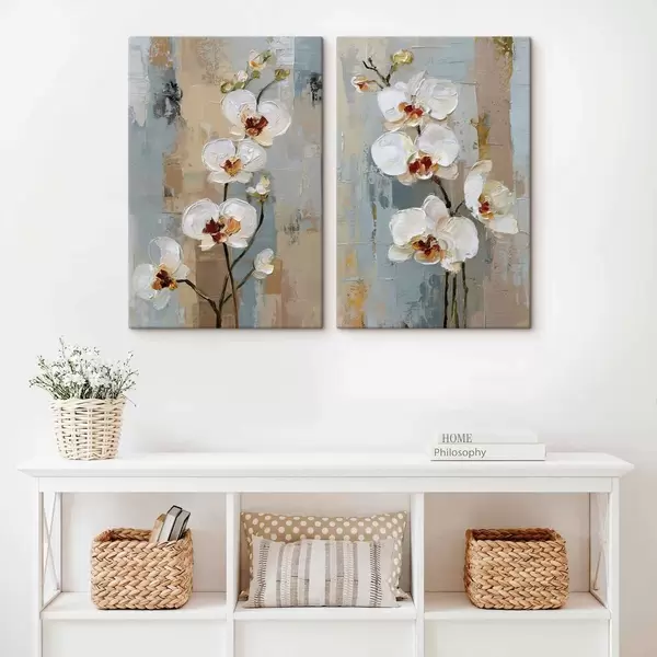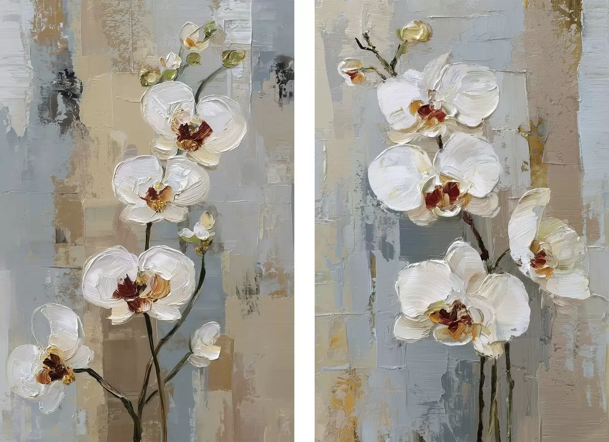 Vászonkép fehér orchidea virágok olajfestmény stílusban Nr m01175