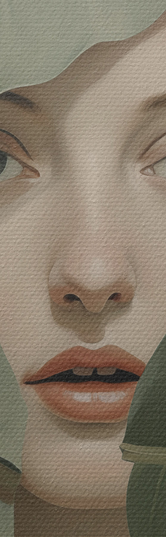 Ahhoz, hogy a vásznat a feszítőrúdra feszítsük anélkül, hogy a kép megsérülne, tükrözött képet használunk.