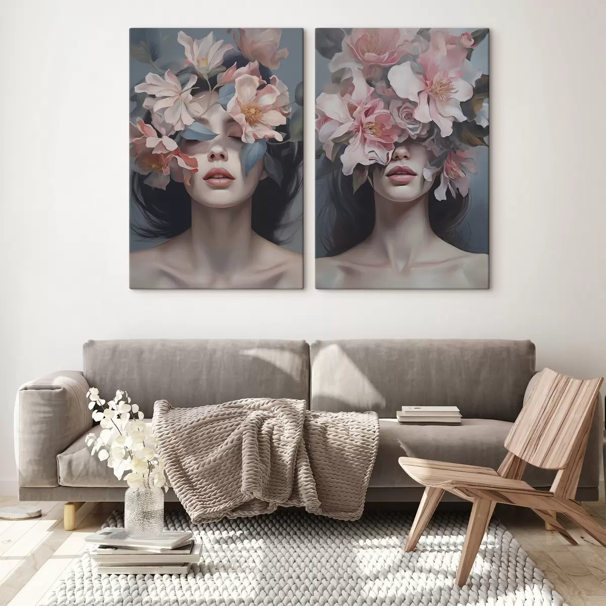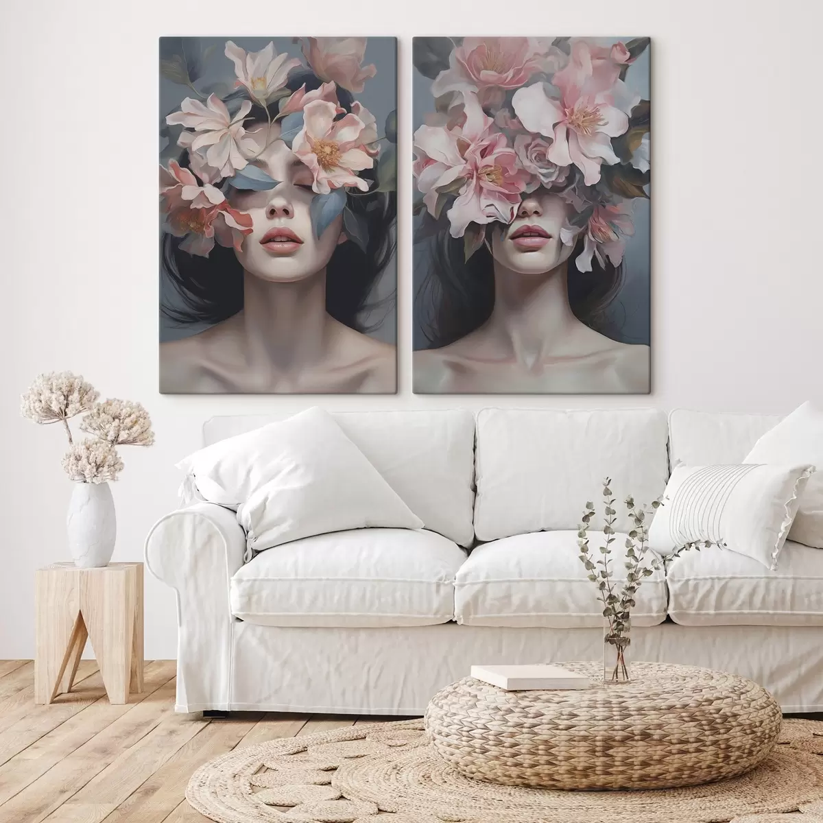 Vászonkép Absztrakt női portré virágokkal Nr m01221