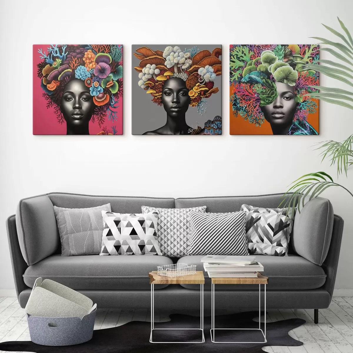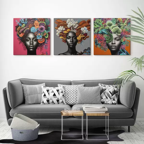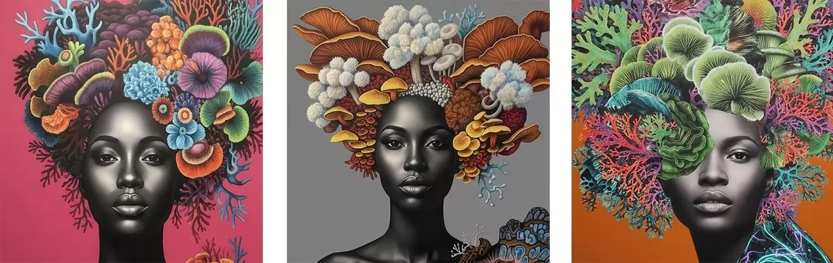 Vászonkép Pszichedelikus portré egy gombákkal körülvett nőről Nr m01308