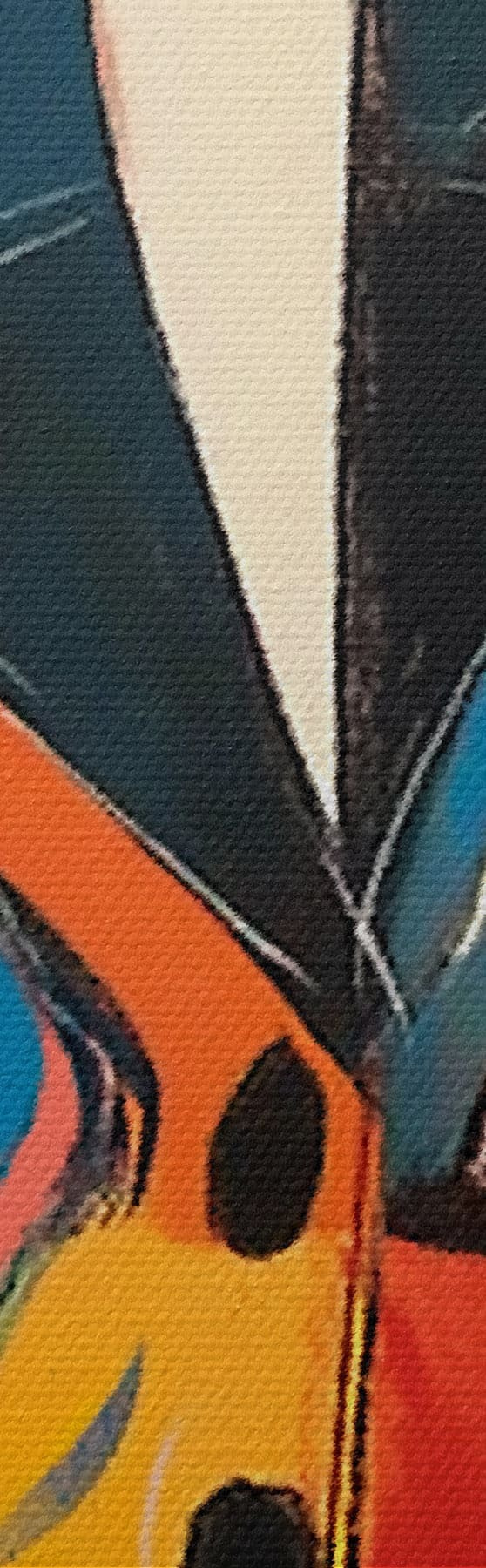 Ahhoz, hogy a vásznat a feszítőrúdra feszítsük anélkül, hogy a kép megsérülne, tükrözött képet használunk.