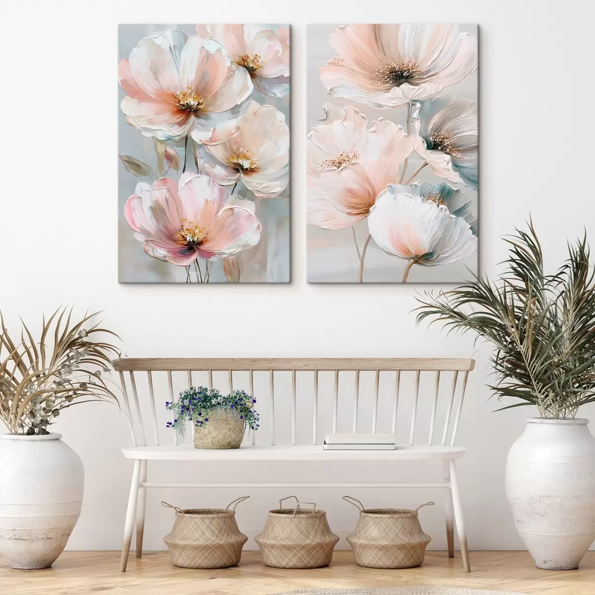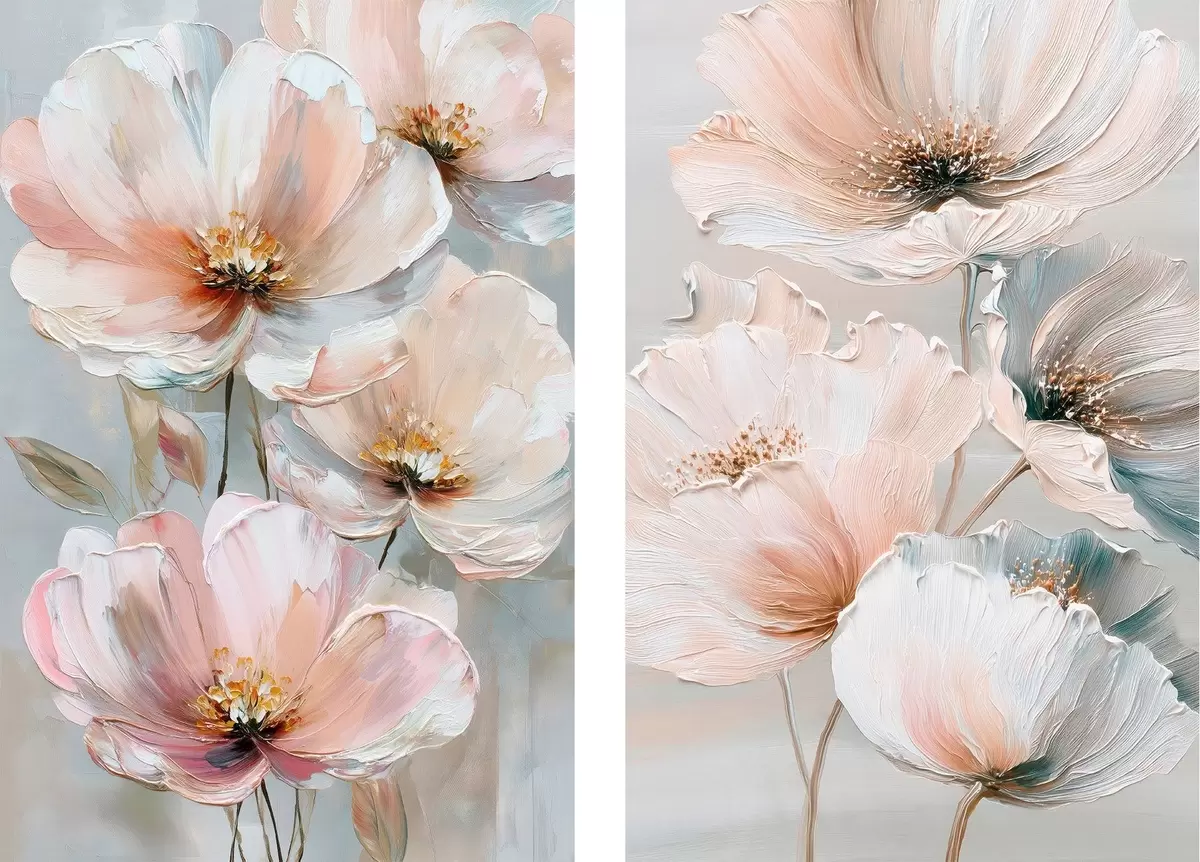Vászonkép Bézs-korall színű virágos diptichon olajfestmény stílusban Nr m30029