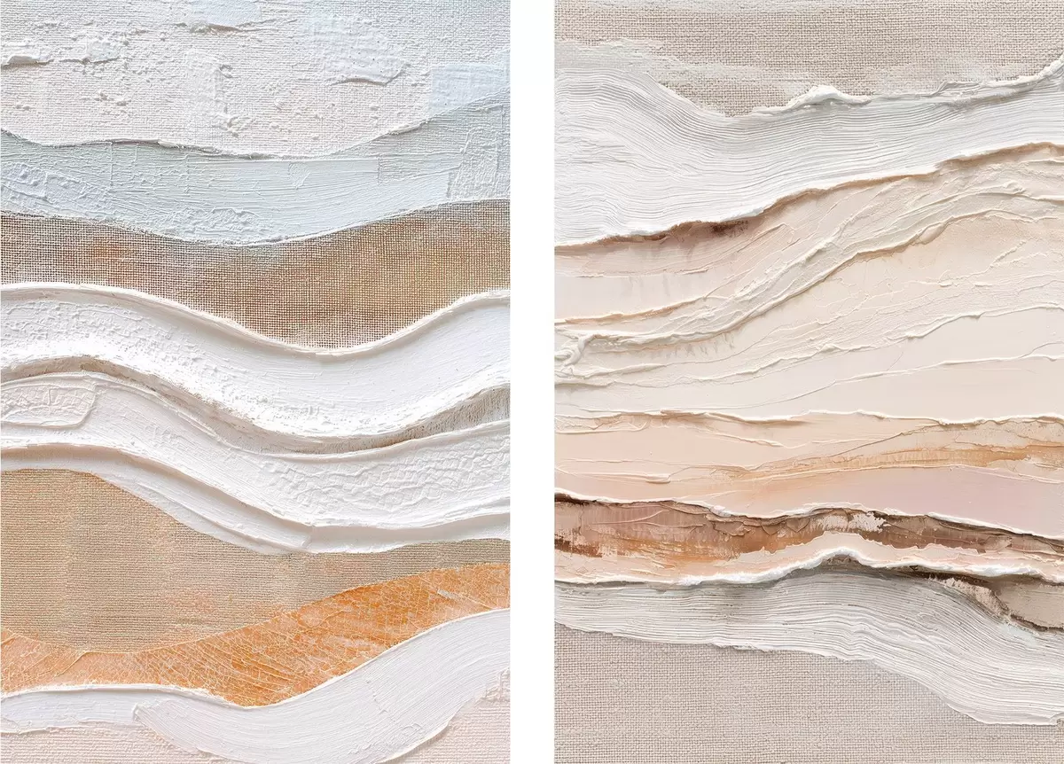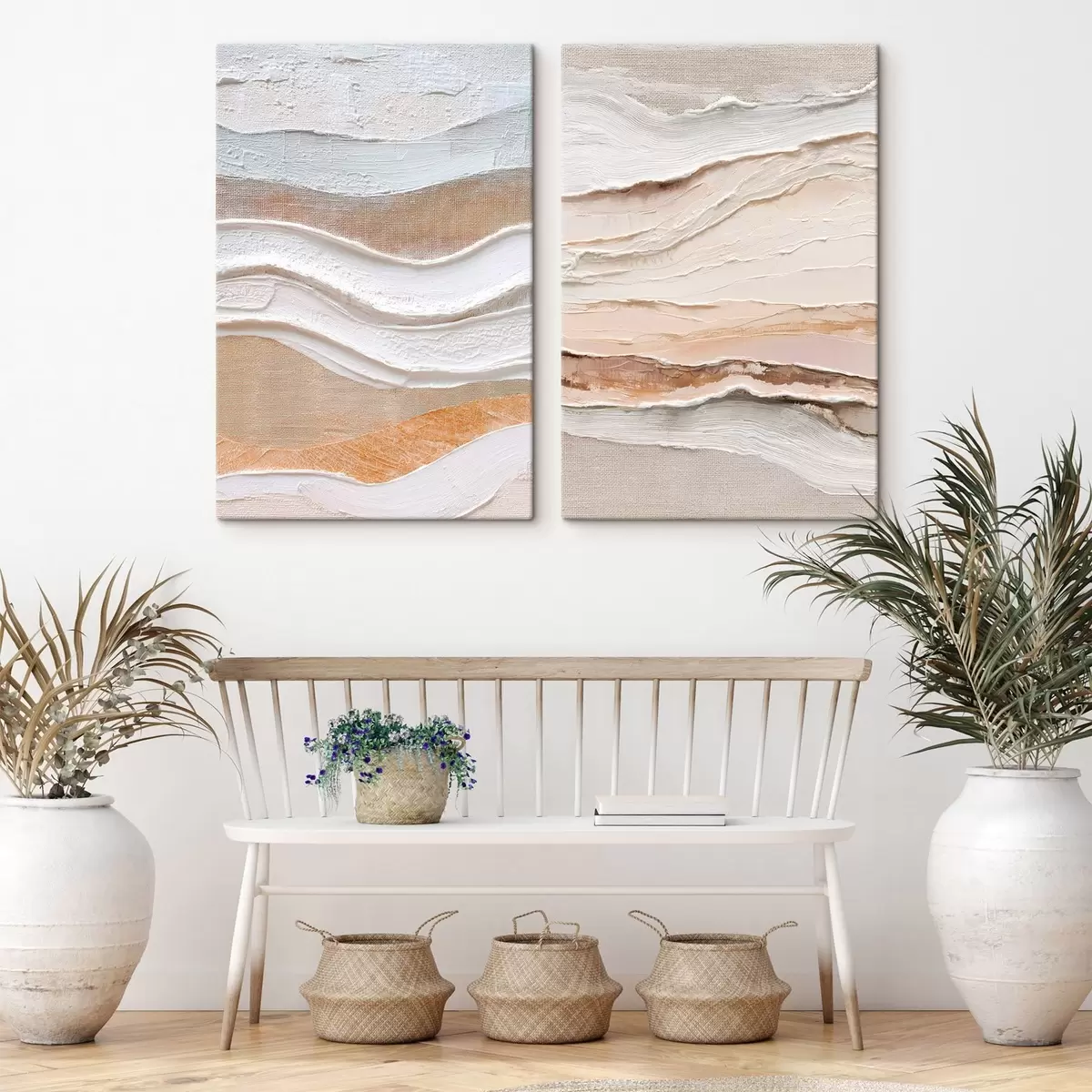 Vászonkép Minimalista diptichon texturált hullámokkal lenvászon háttérrel Nr m30031