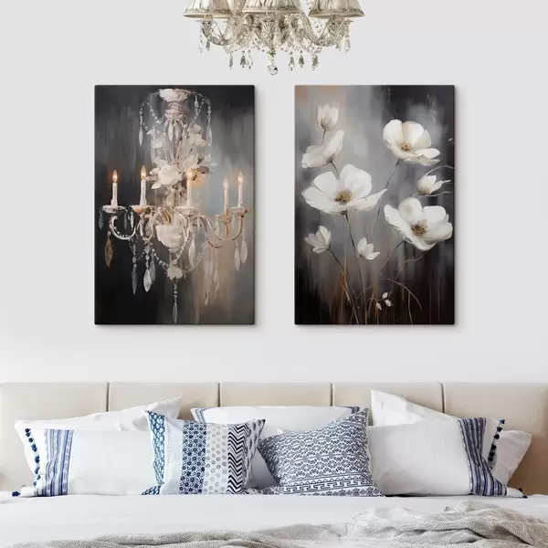 Vászonkép Absztrakt, díszes csillár gyertyákkal és virágdíszekkel, sötét, texturált háttér előtt Nr m30049
