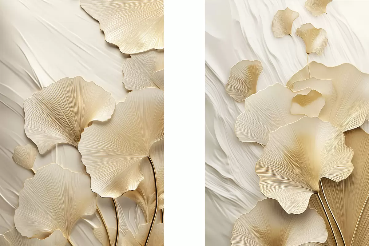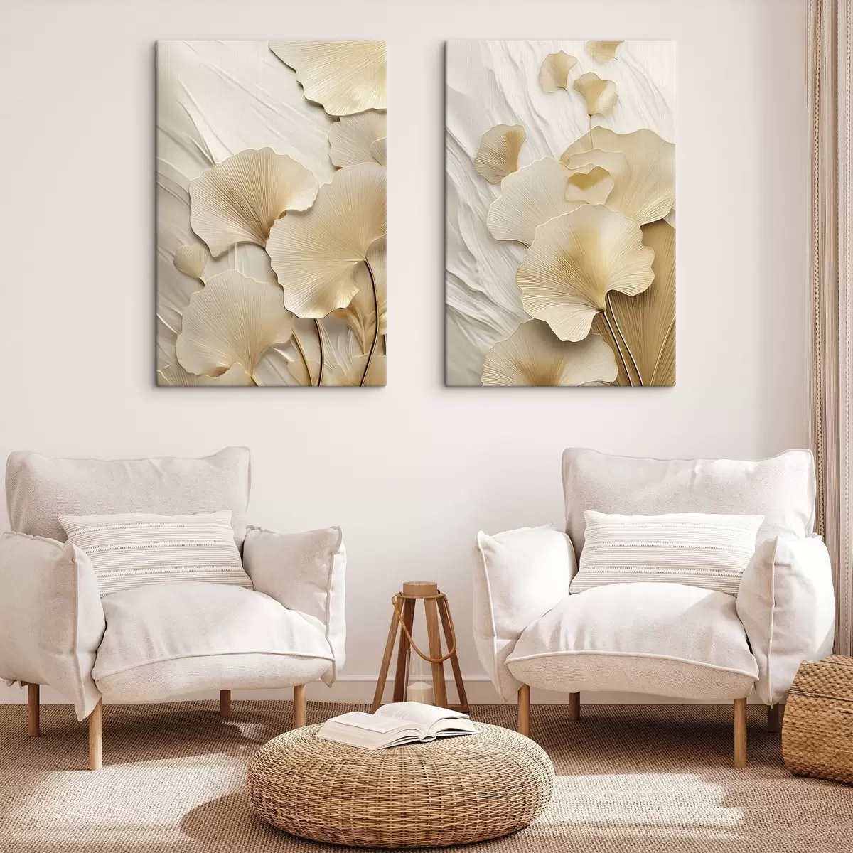Vászonkép Ginkgo levélkivonat texturált, világos háttér előtt, elegáns és absztrakt kompozíció Nr m30054