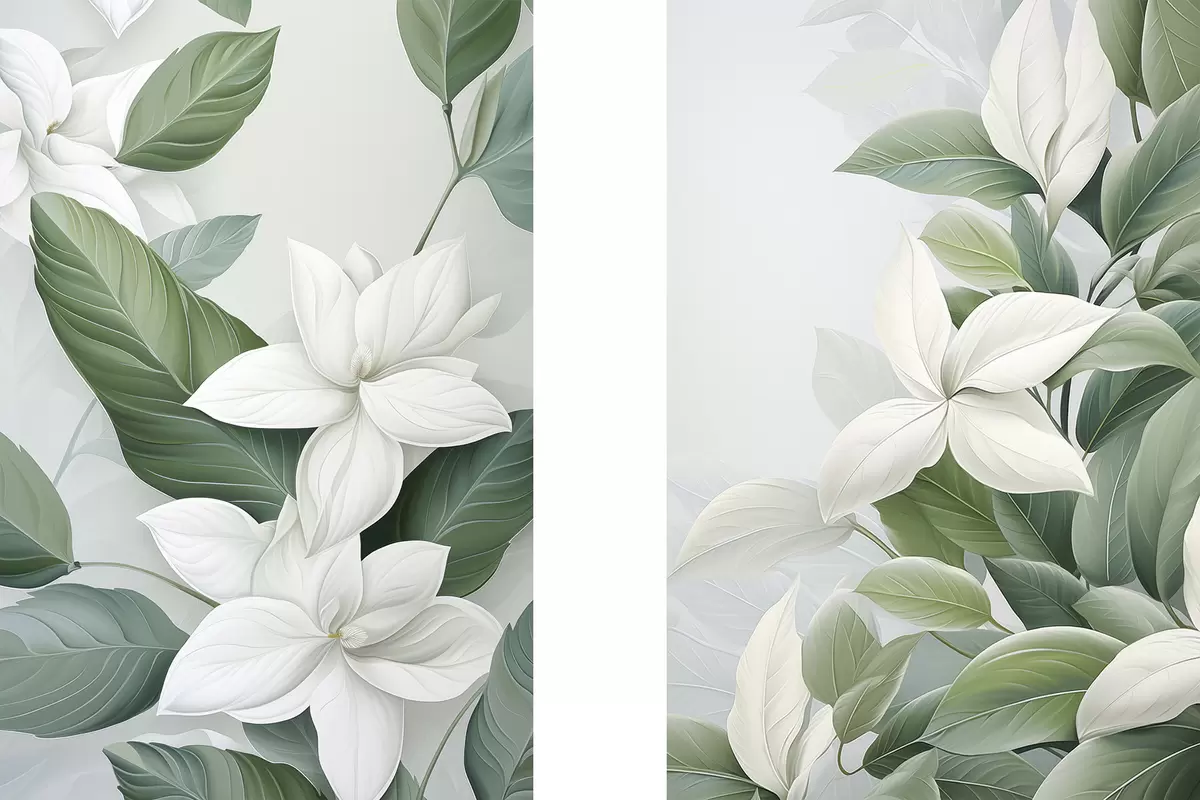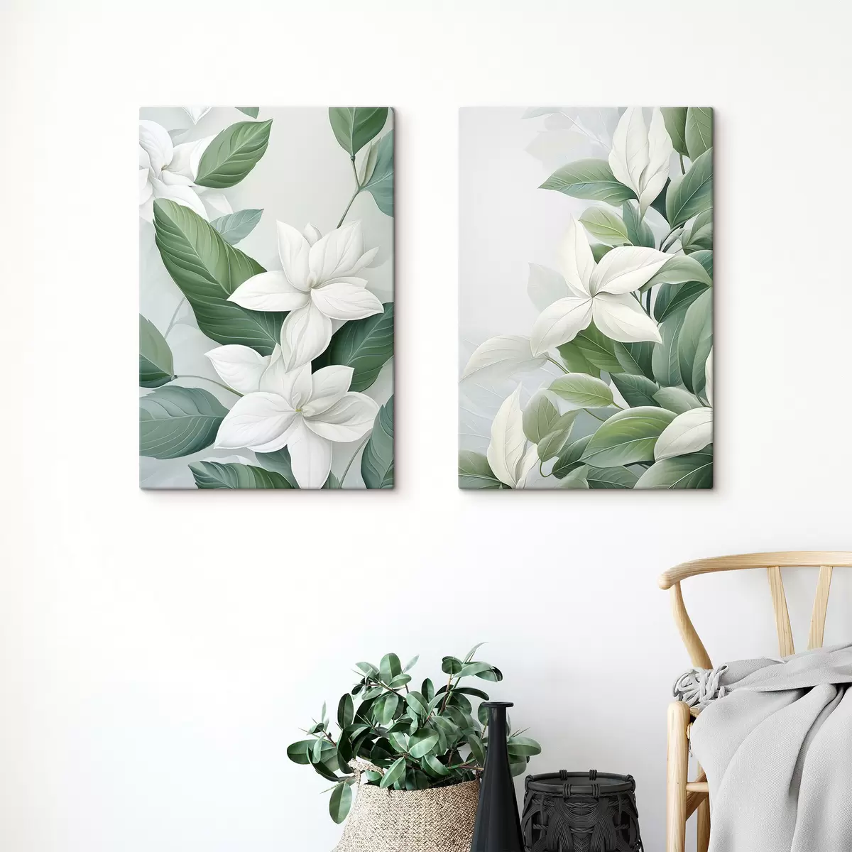 Vászonkép Fehér virágok zöld levelekkel, pasztell háttérrel Nr m30055