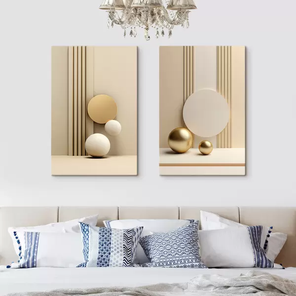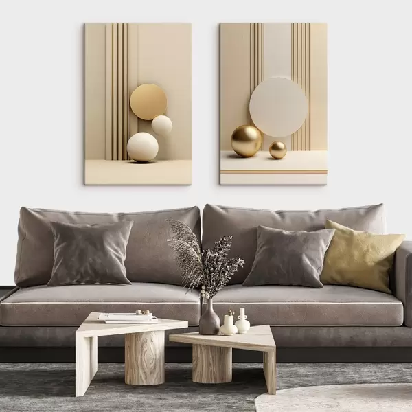 Vászonkép Absztrakt bézs modern művészet függőleges vonalakkal és gömbökkel Nr m30056