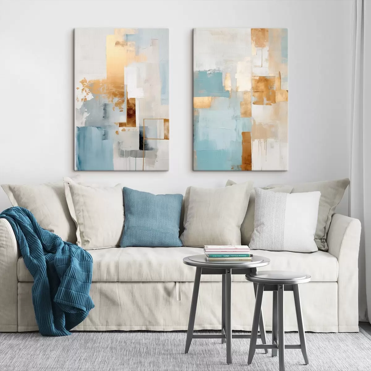 Vászonkép Absztrakt geometriai formák sárga, kék és fehér színekkel, texturált és minimalista kompozícióval Nr m30061