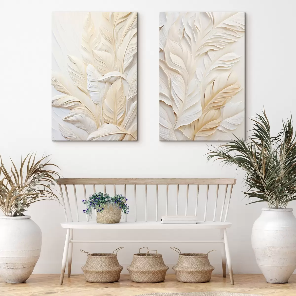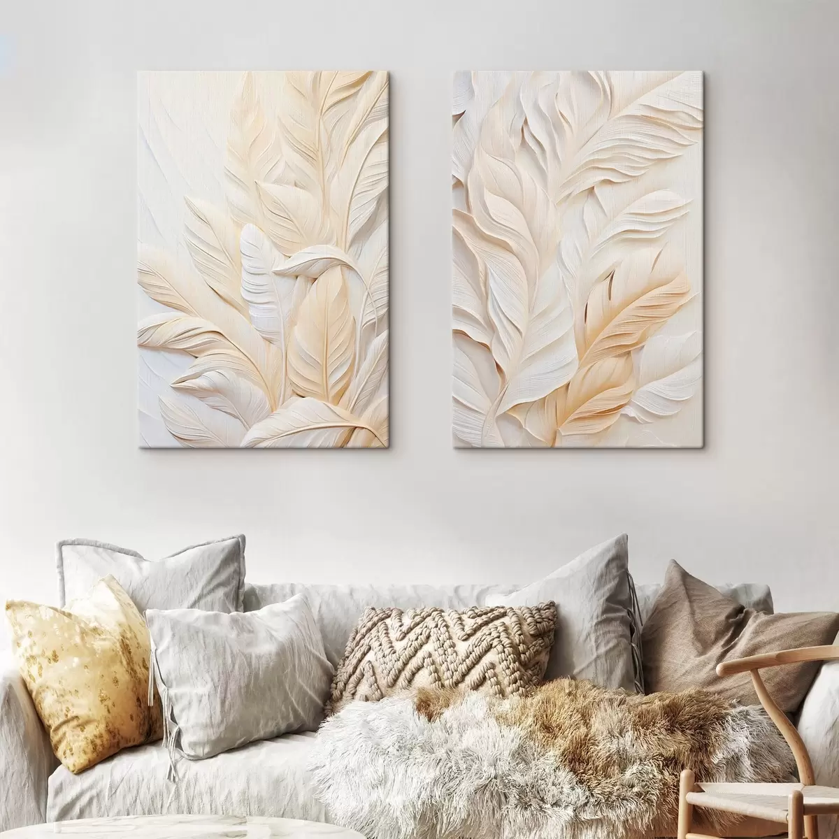 Vászonkép Krém színű tollak egymást átfedve, puha, világos háttérrel Nr m30062