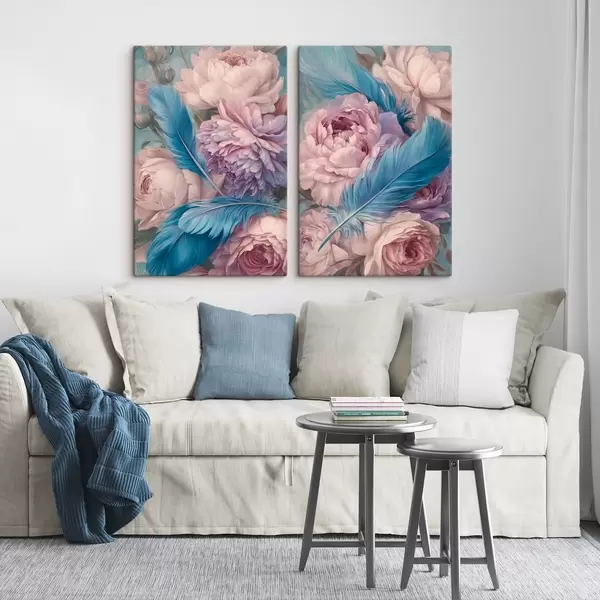 Vászonkép tollak a pünkösdi rózsák között Nr m30092
