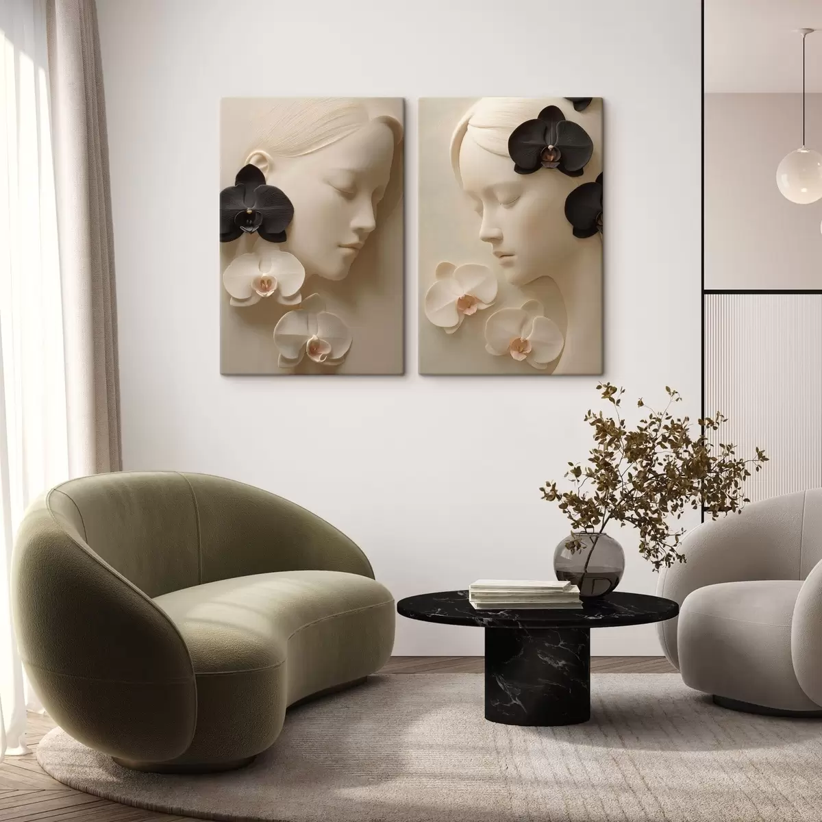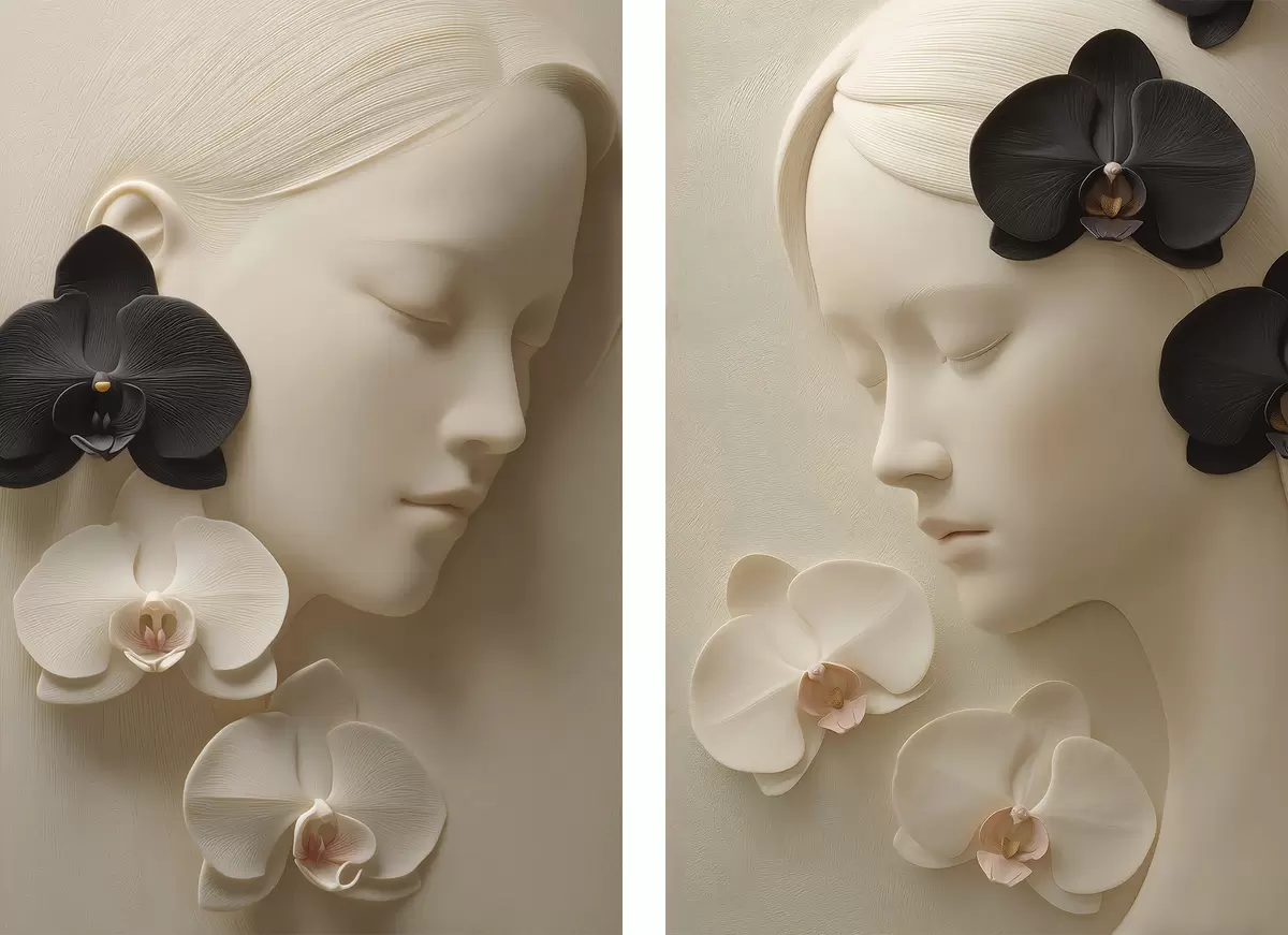 Vászonkép lány orchideákkal, dombormű stílusban Nr m30093