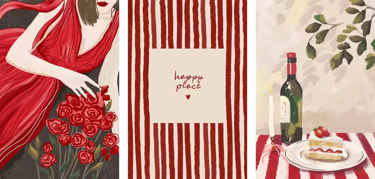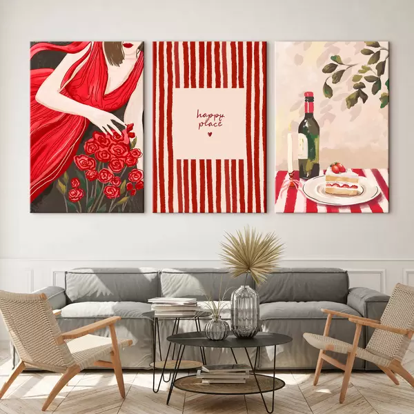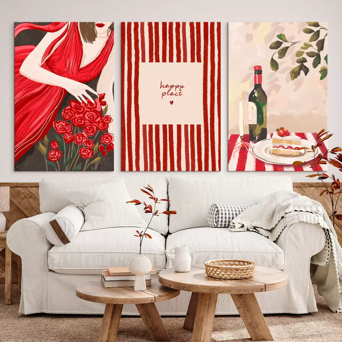 Vászonkép Rózsákkal, csíkos poszterrel és asztallal rendelkező nő Nr m30099