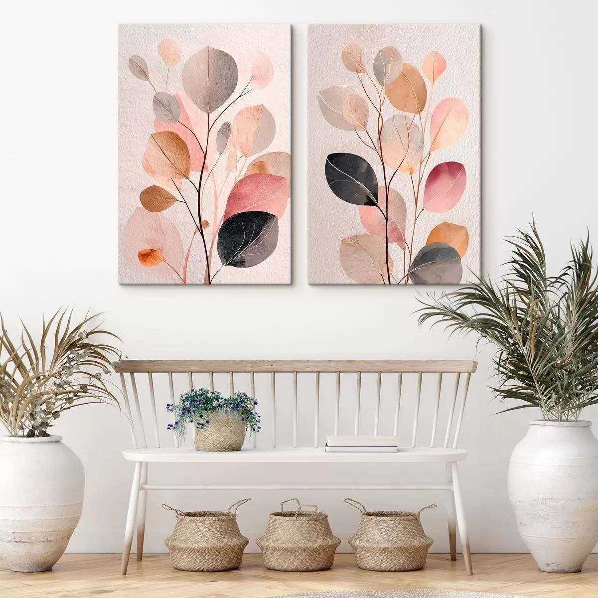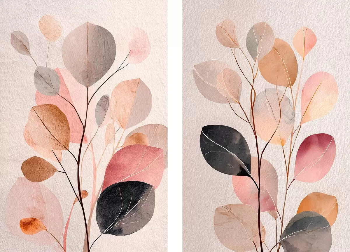 Vászonkép Kétrészes absztrakt növényi kompozíció kortárs festészeti stílusban Nr m30135