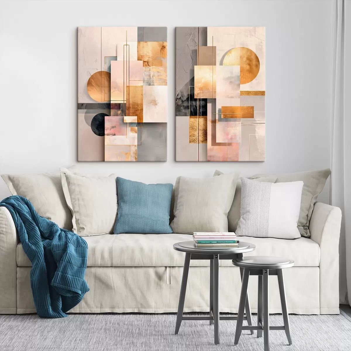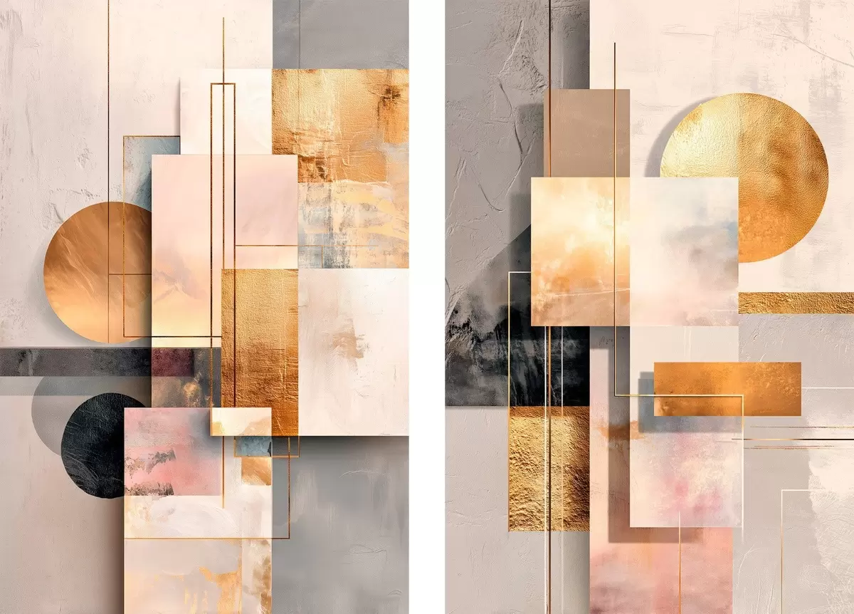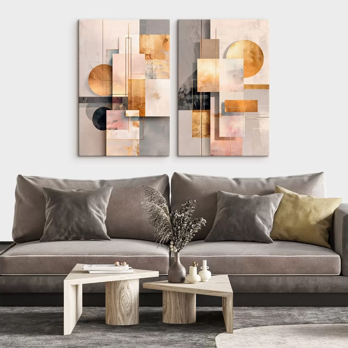 Vászonkép Geometrikus absztrakció réz- és bézs árnyalatokkal, modern grafikai stílusban Nr m30138