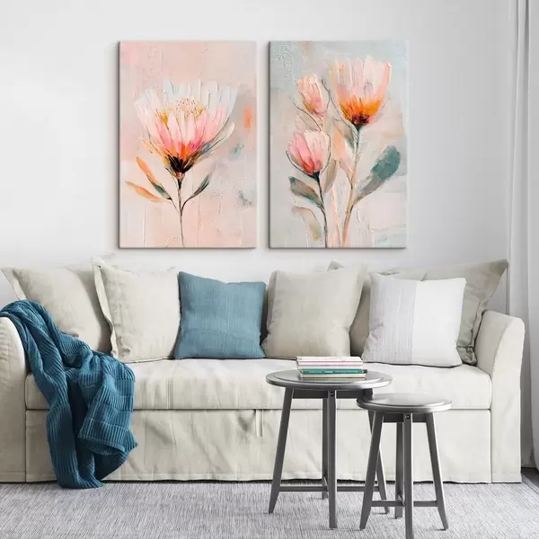 Vászonkép Pasztell árnyalatú virágkompozíció, térhatású ecsetvonásokkal, kortárs művészeti stílusban Nr m30140