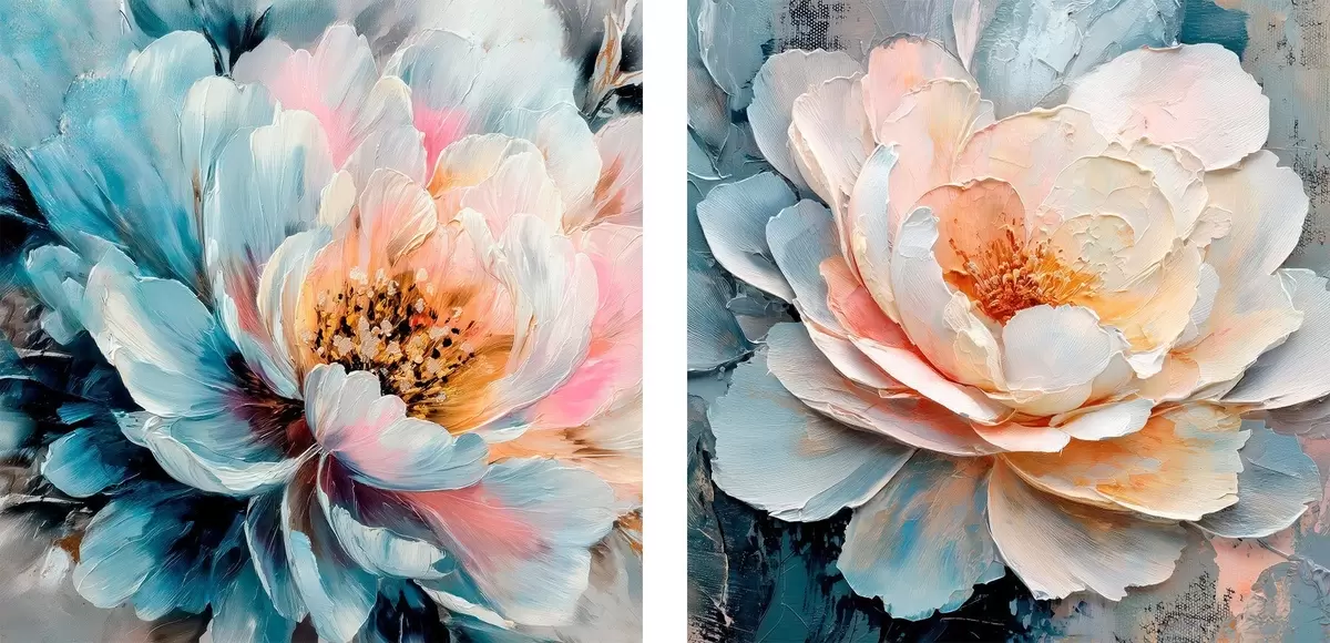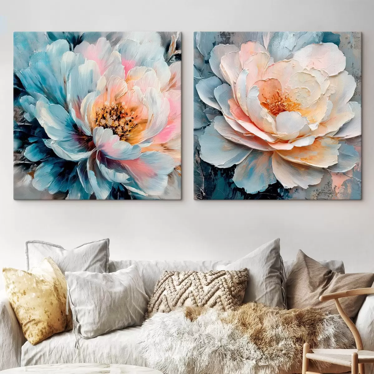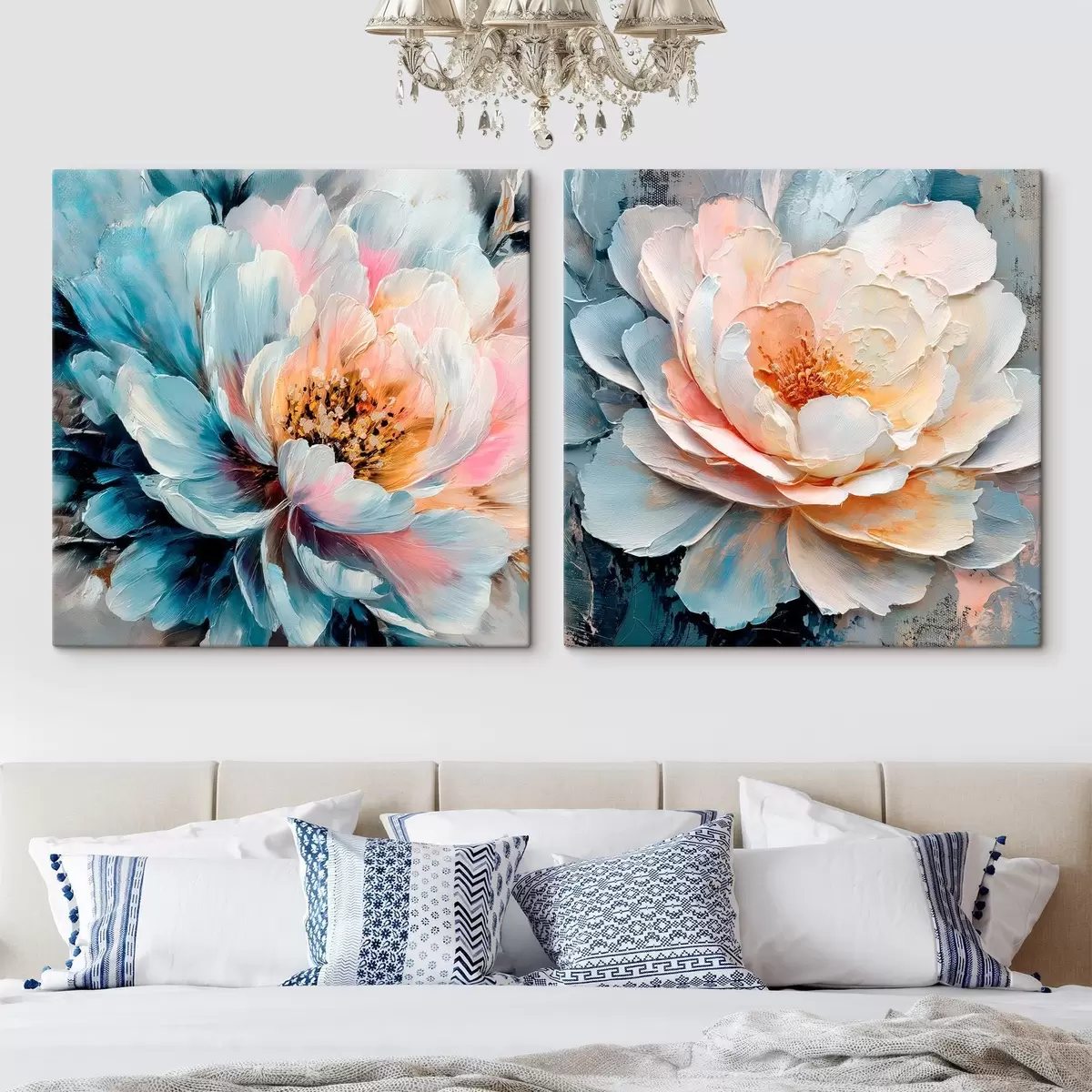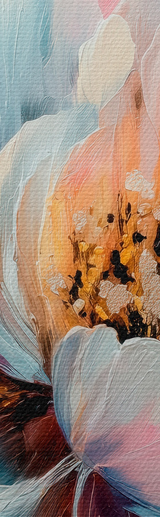 Vászonkép Absztrakt virágkompozíció rózsaszín és kék színvilágban, texturált szirmokkal Nr m30148
