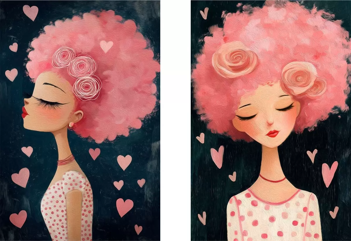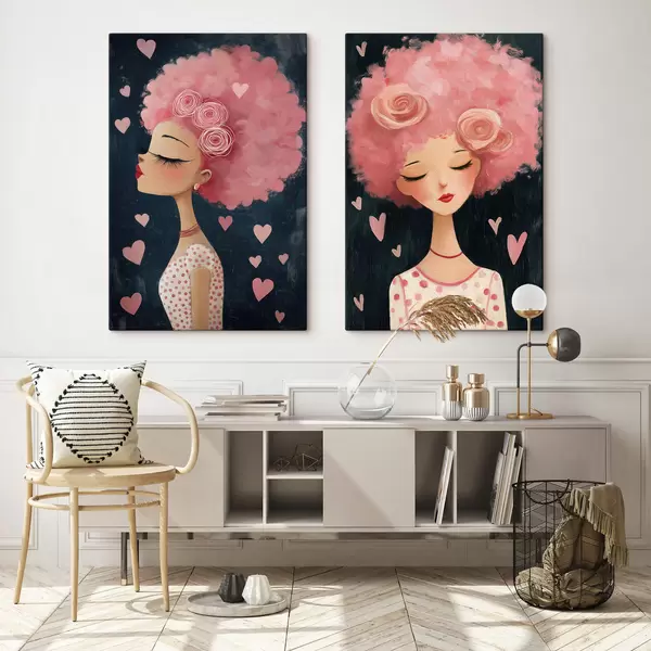 Vászonkép Rózsaszín hajú lány szívekkel Nr m30156
