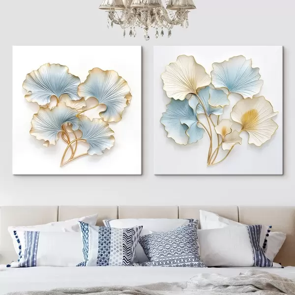 Vászonkép Stilizált ginkgo-levelek kék és sárga díszítéssel Nr m30203