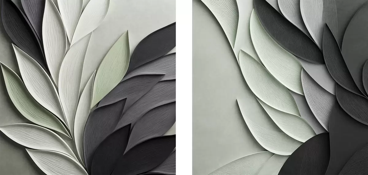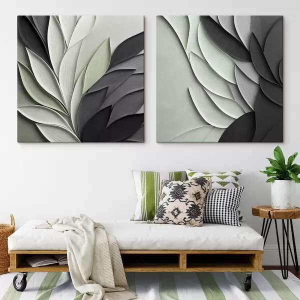 Vászonkép Absztrakt, stilizált levelek szürke, fehér és halványzöld árnyalatokban Nr m30210