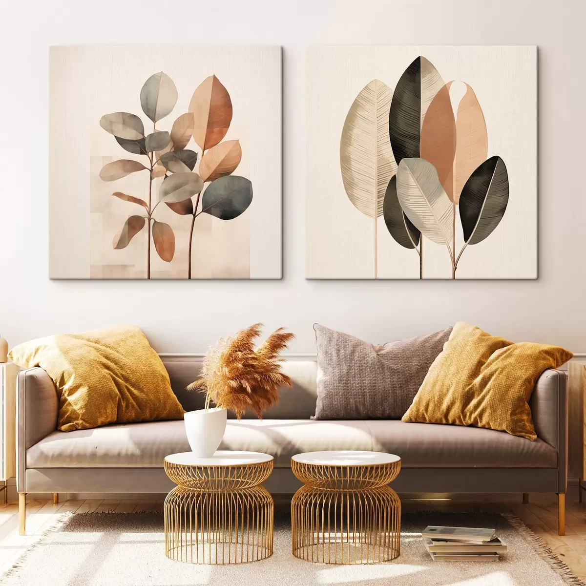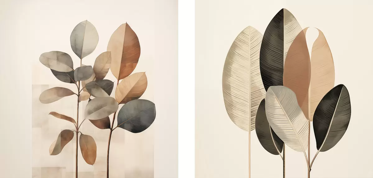 Vászonkép Magas növények ovális levelekkel, tompított színekben és absztrakt téglalap alakú mintákkal Nr m30211