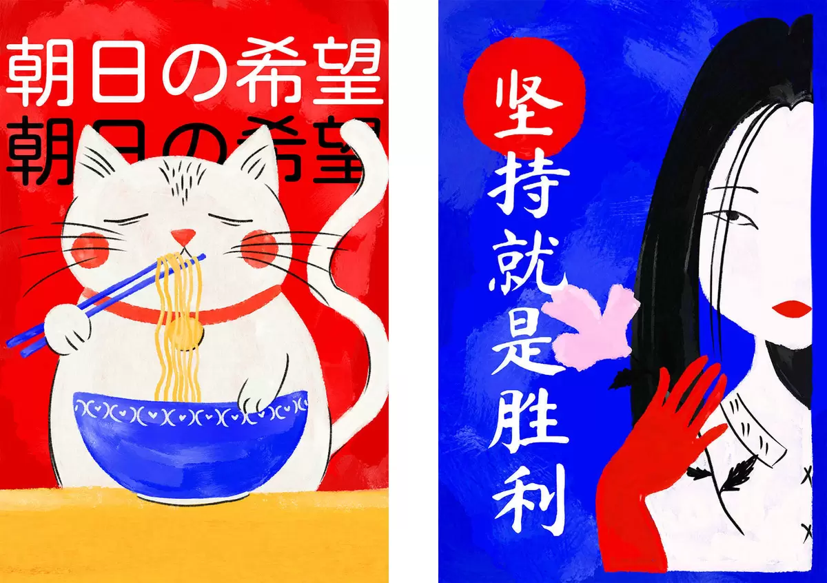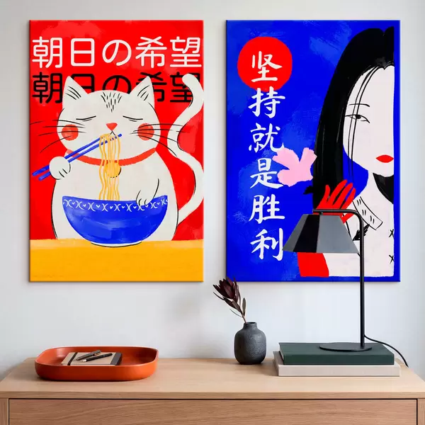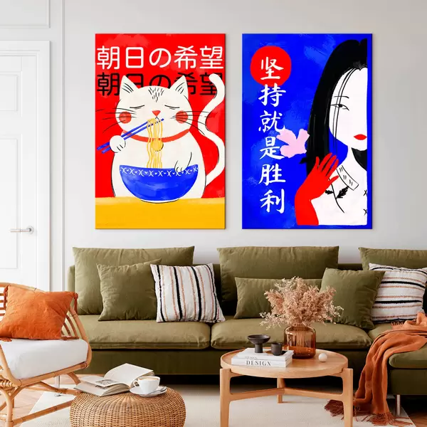 Vászonkép Kétlapos kép macskával és női portréval, merész stílusban Nr m30233