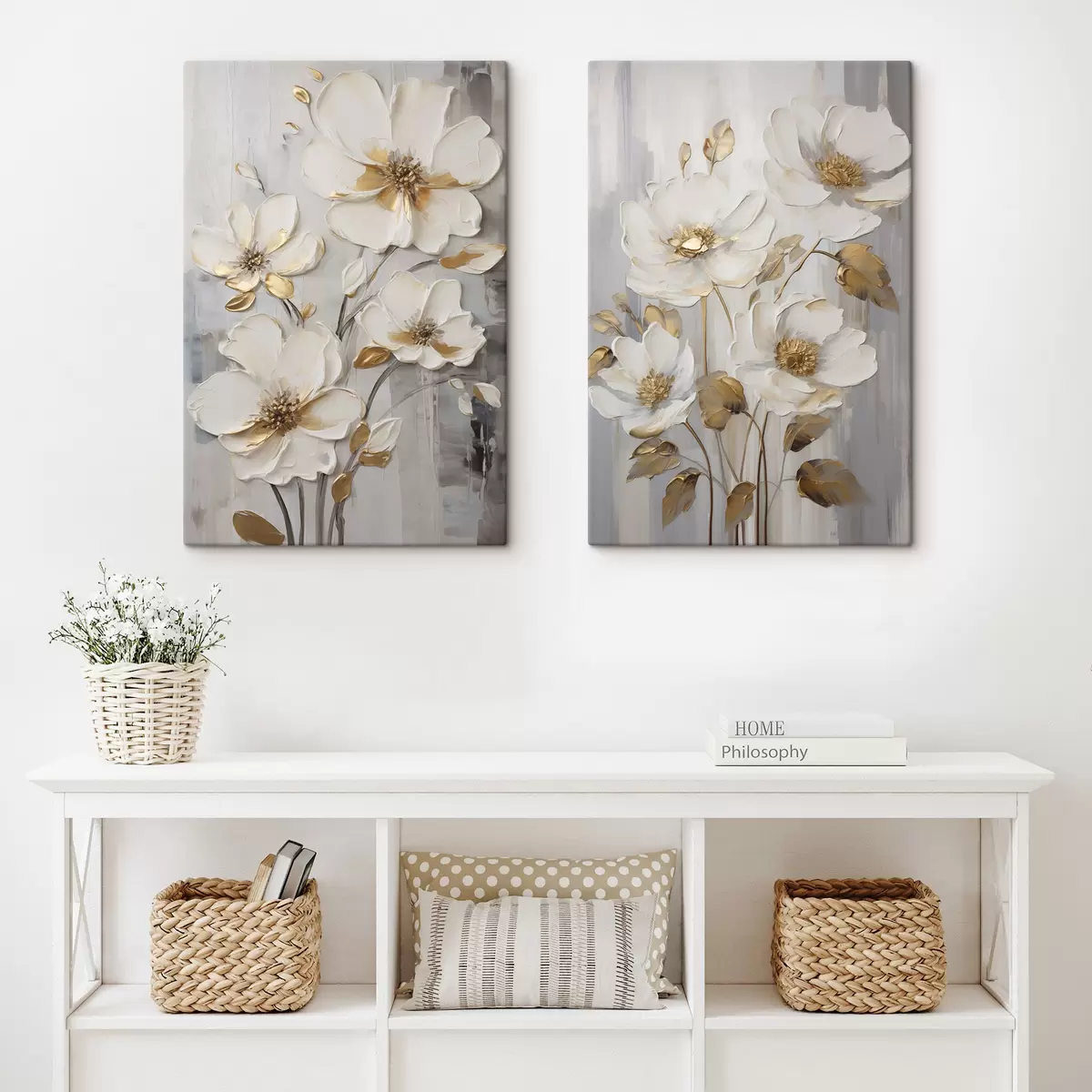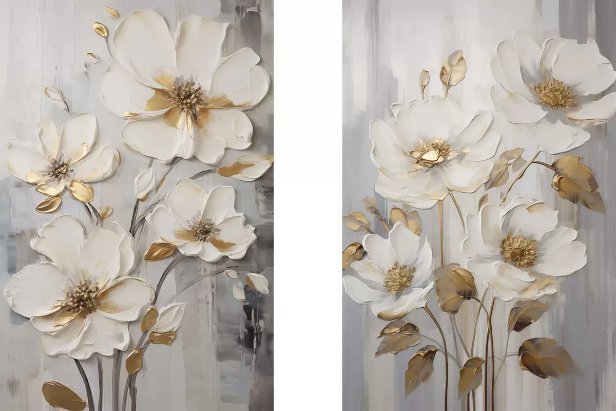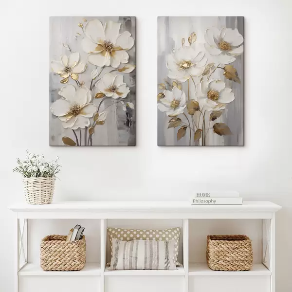Vászonkép Fehér virágok sárga díszítéssel texturált háttér előtt Nr m30311