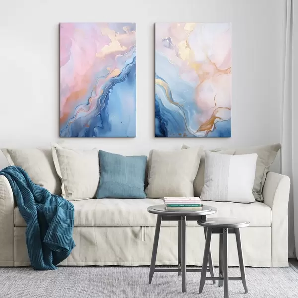 Vászonkép Absztrakt, texturált folyadékművészet, rózsaszín és kék színű, kavargó mintákkal Nr m30315
