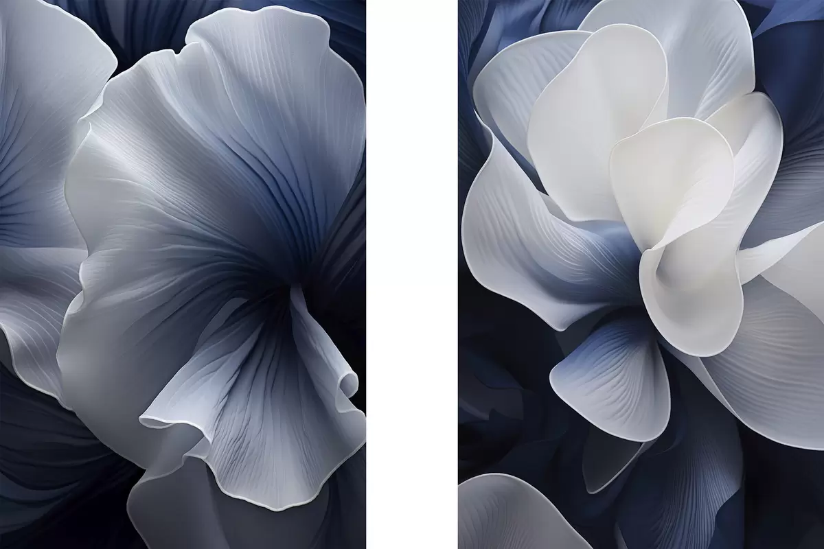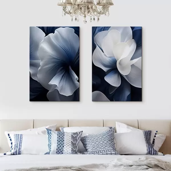 Vászonkép Absztrakt kék-fehér virágszirmok sötét háttér előtt Nr m30316