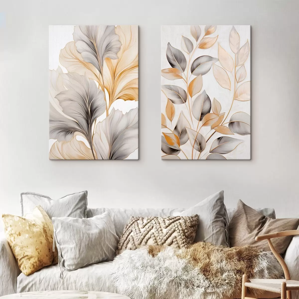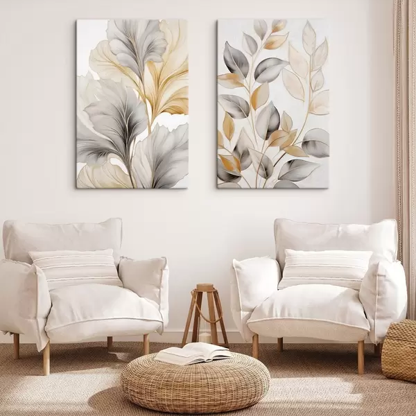 Vászonkép Nagy, áttetsző levelek szürke és sárga árnyalatokban Nr m30323