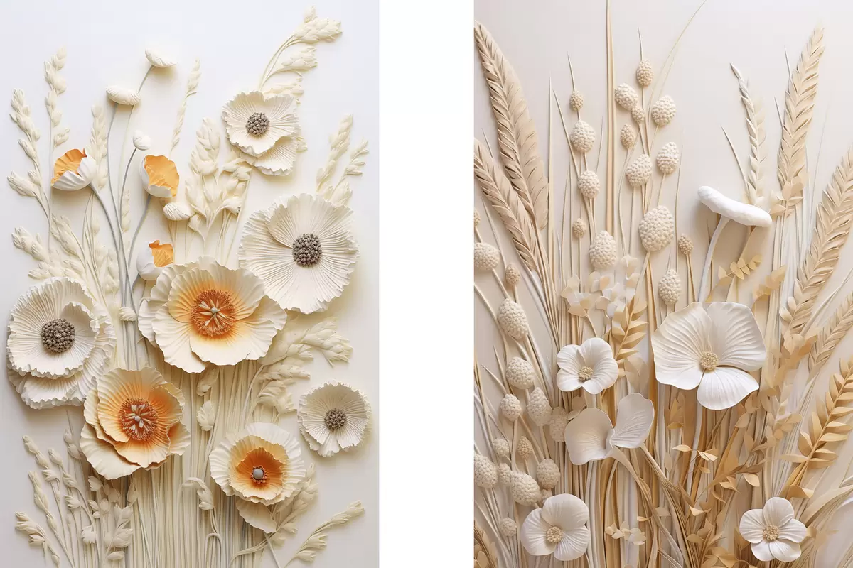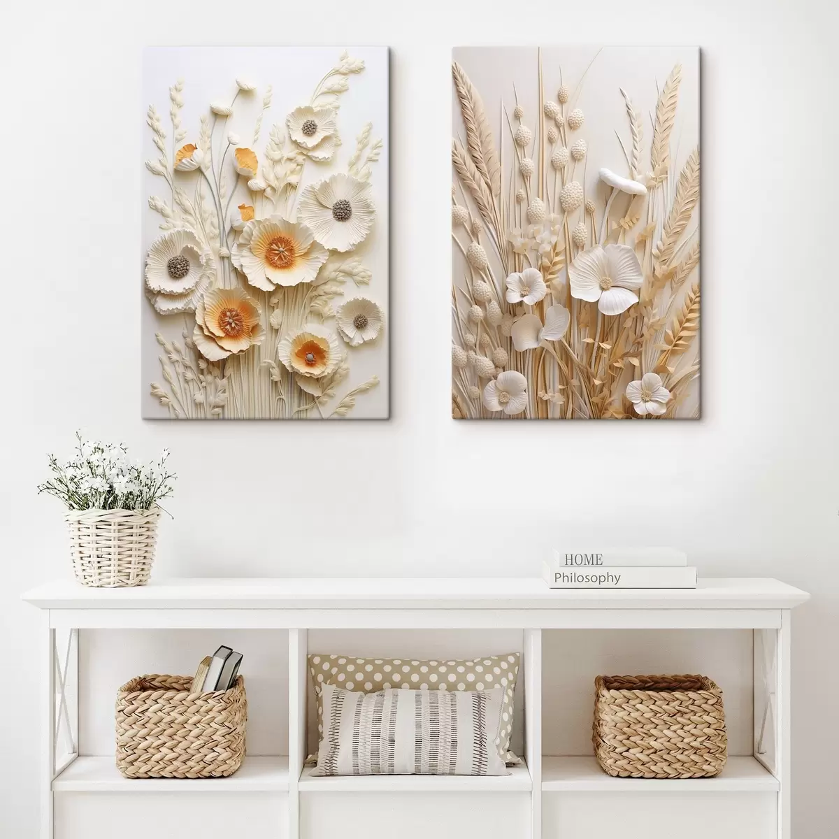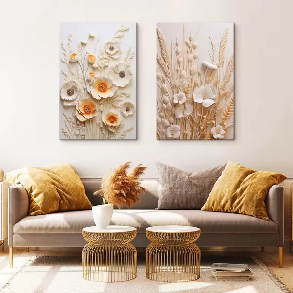 Vászonkép Krém és narancssárga pipacsokból álló csokor, szárított búzaszárral Nr m30324