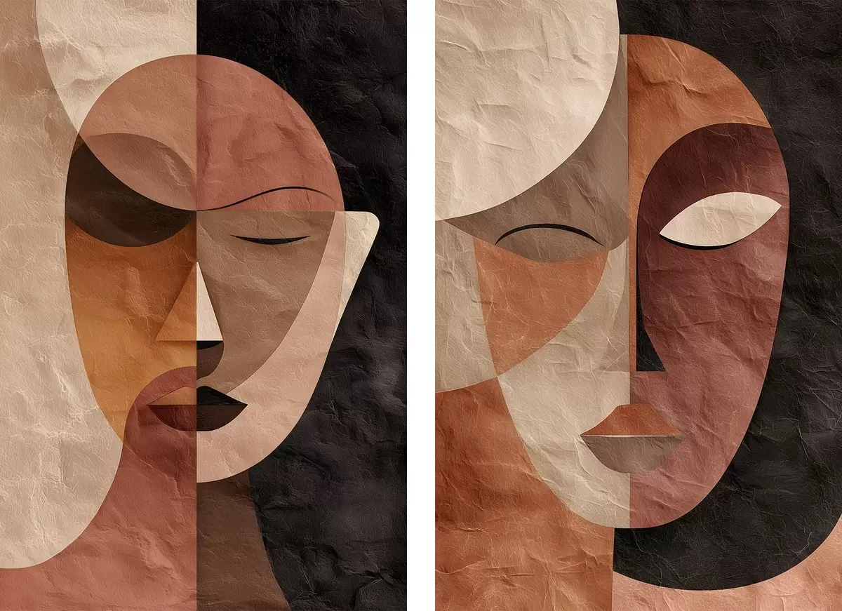 Vászonkép absztrakt arcok kávébarna árnyalatokban Nr m30329