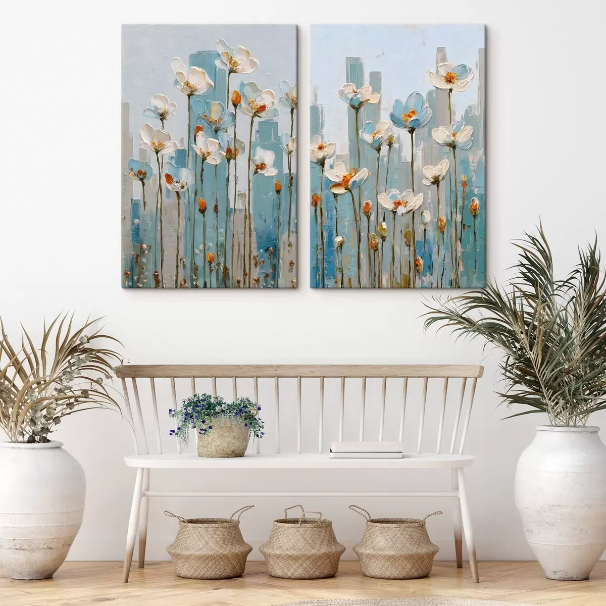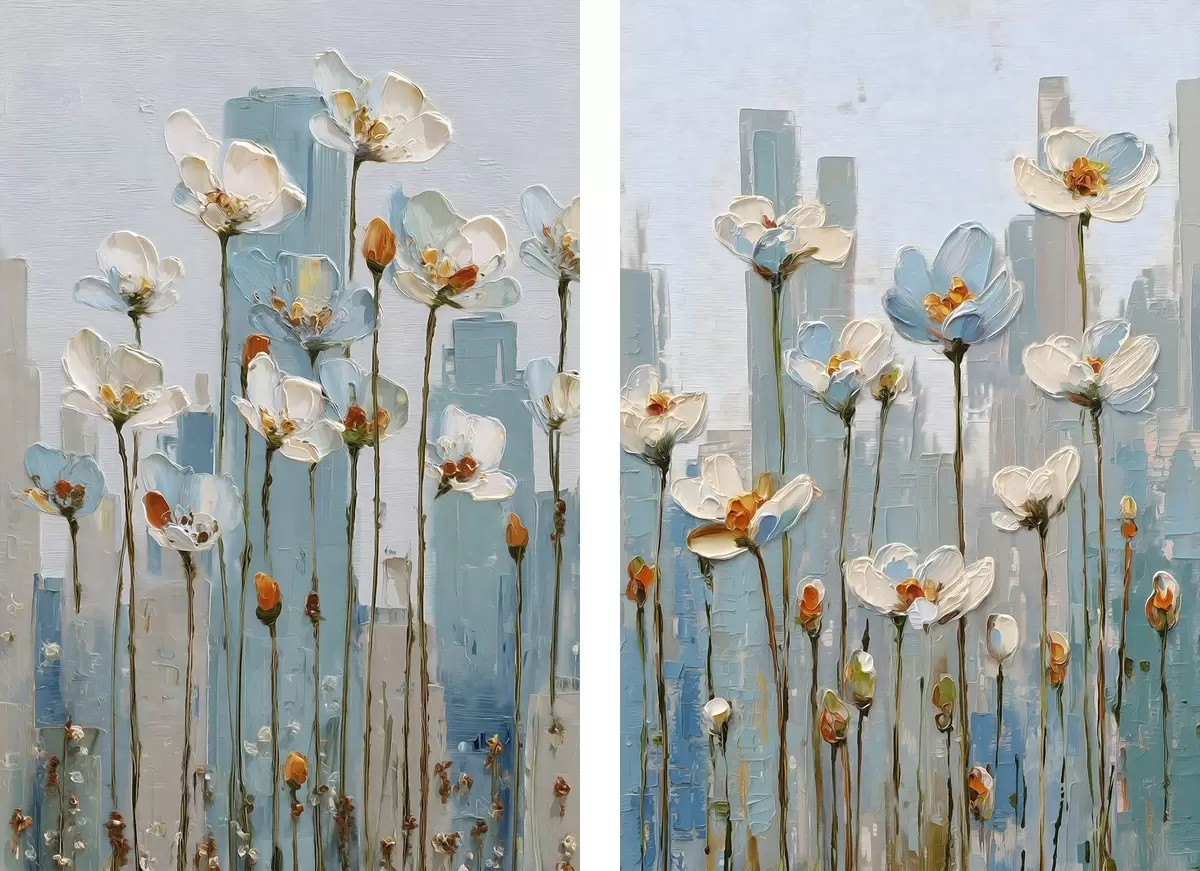 Vászonkép virágok városi háttér előtt, olajfestmény stílusában Nr m30333