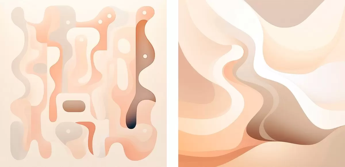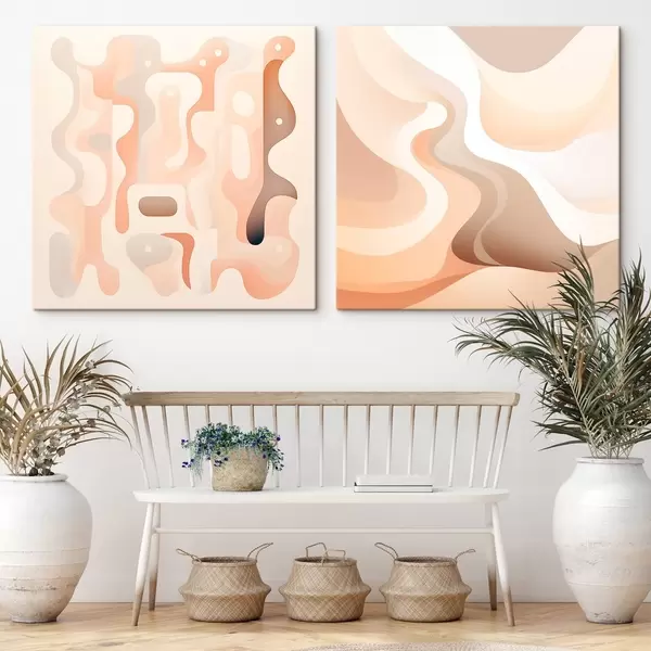 Vászonkép Absztrakt kompozíció áramló vonalakkal és térbeli formákkal, bézs-barna színvilágban Nr m30349