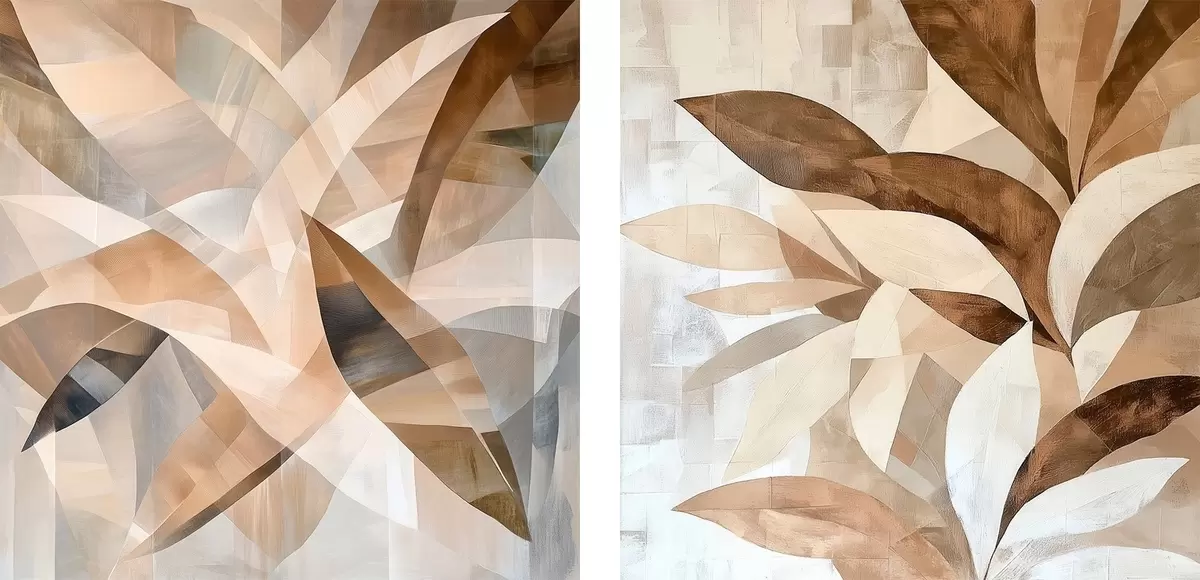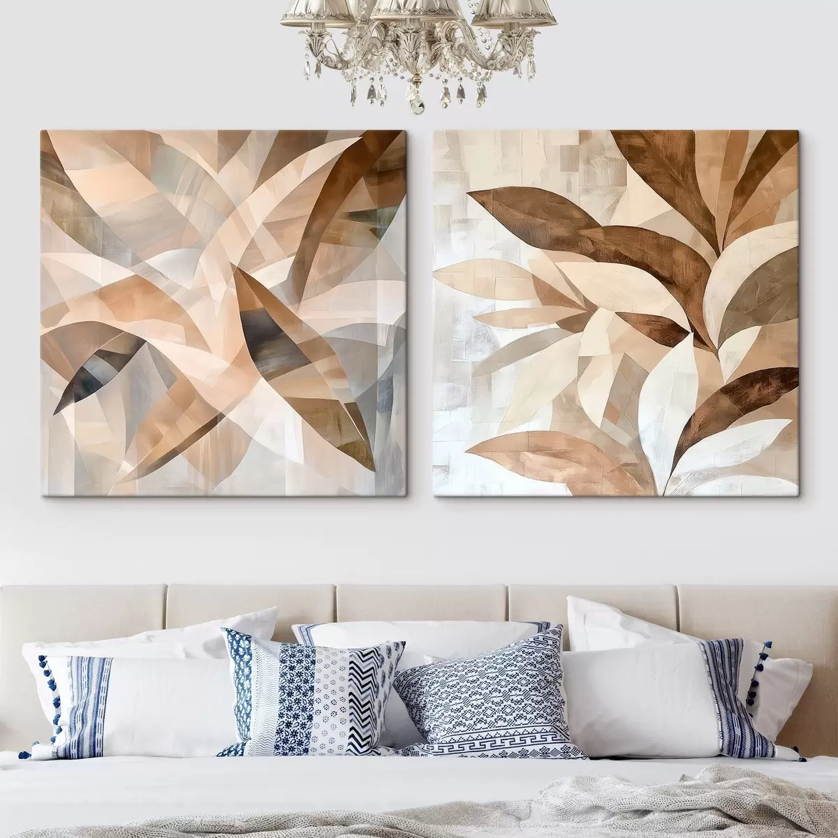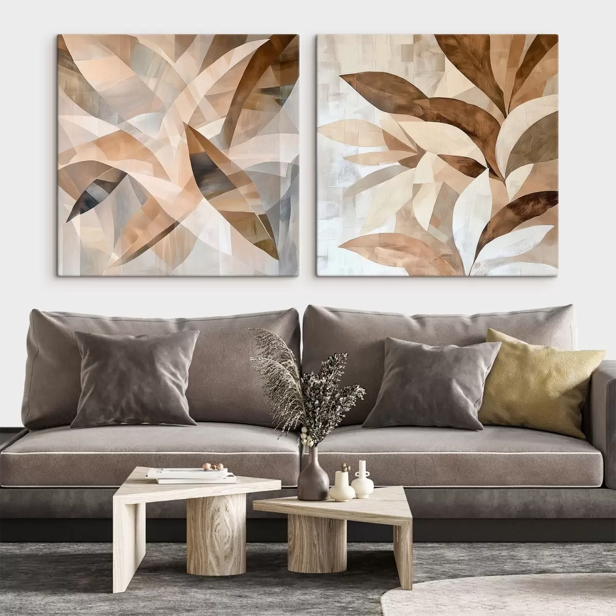 Vászonkép Stilizált lombozat meleg, homokszínű árnyalatokban, kortárs belsőépítészeti illusztrációs stílusban Nr m30350