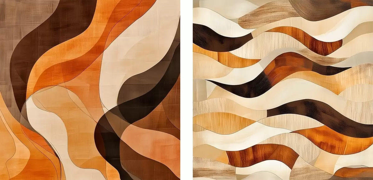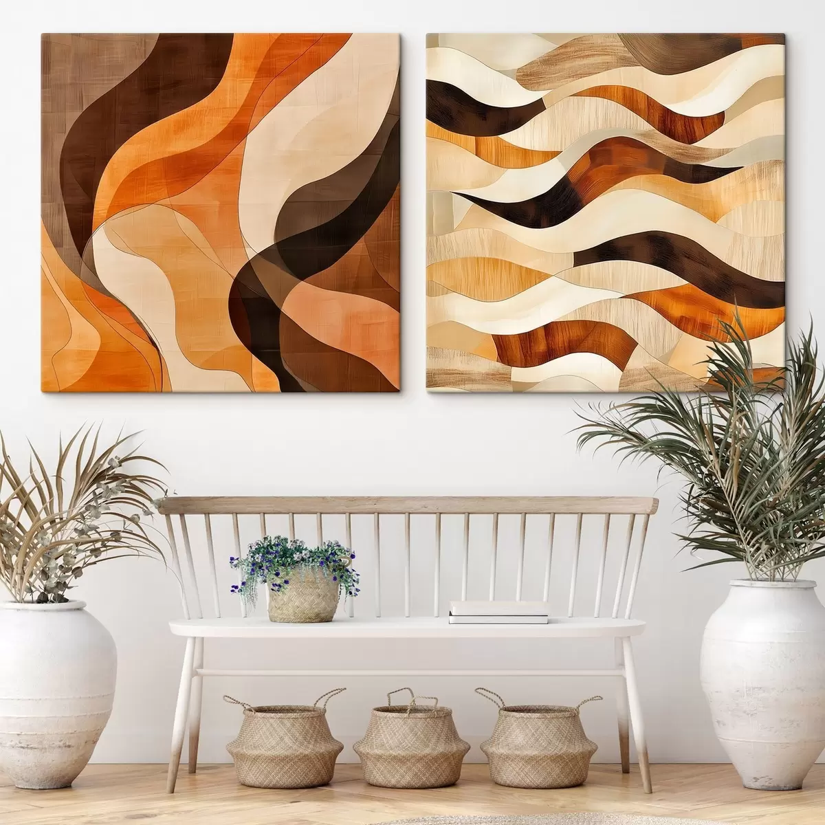 Vászonkép Absztrakt kompozíció hullámzó vonalakkal, meleg barna-bézs színvilágban Nr m30352