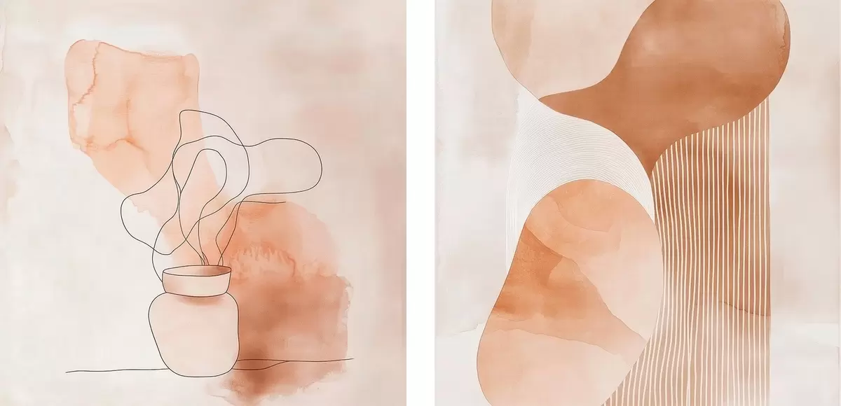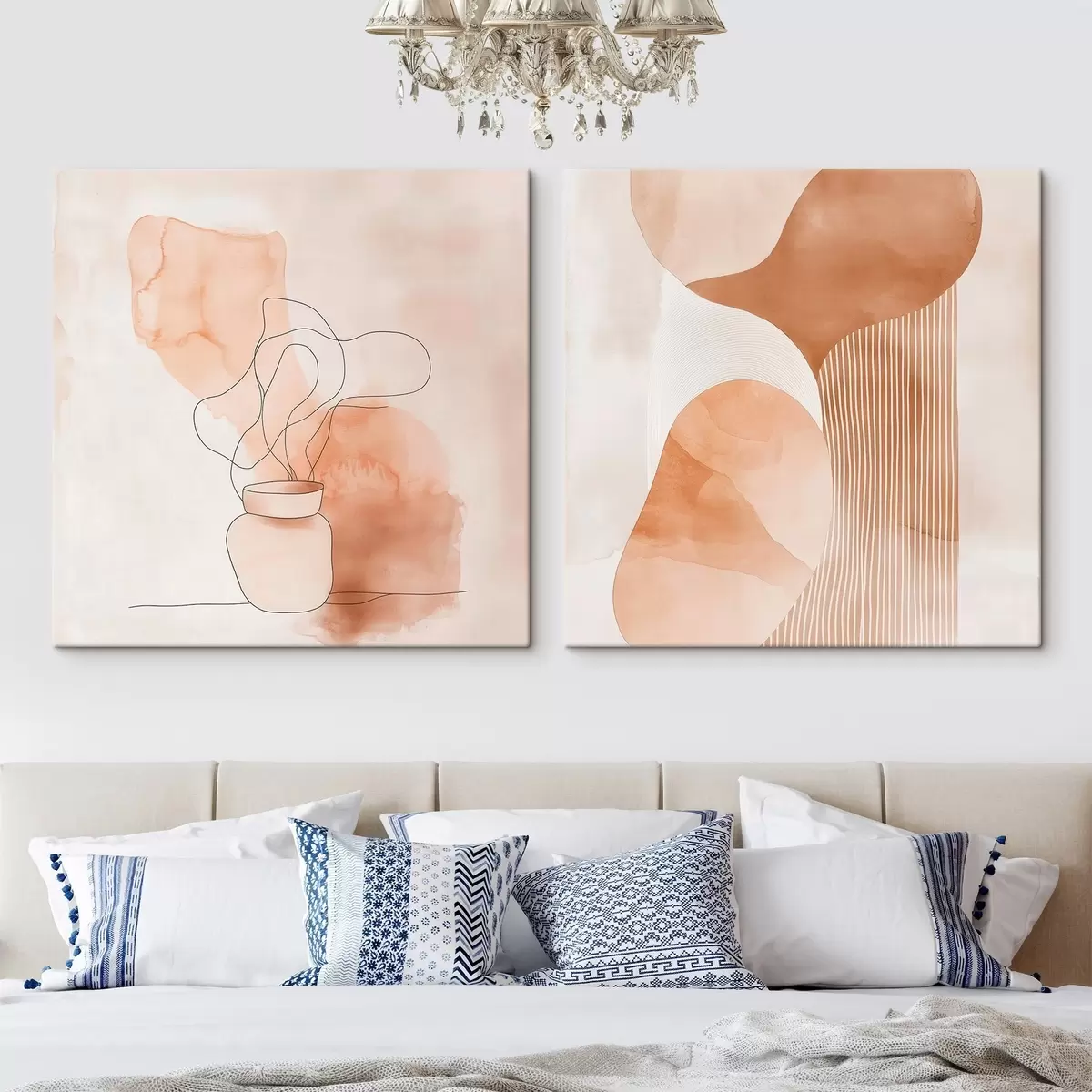 Vászonkép Absztrakt formák bézs-barack színvilágban, lineáris díszítésekkel, minimalista stílusban Nr m30361