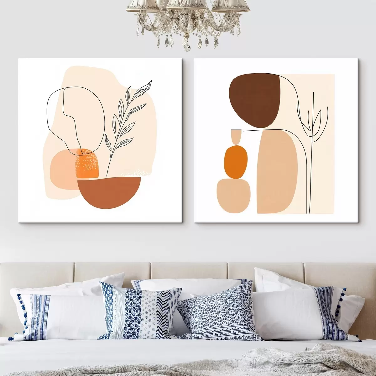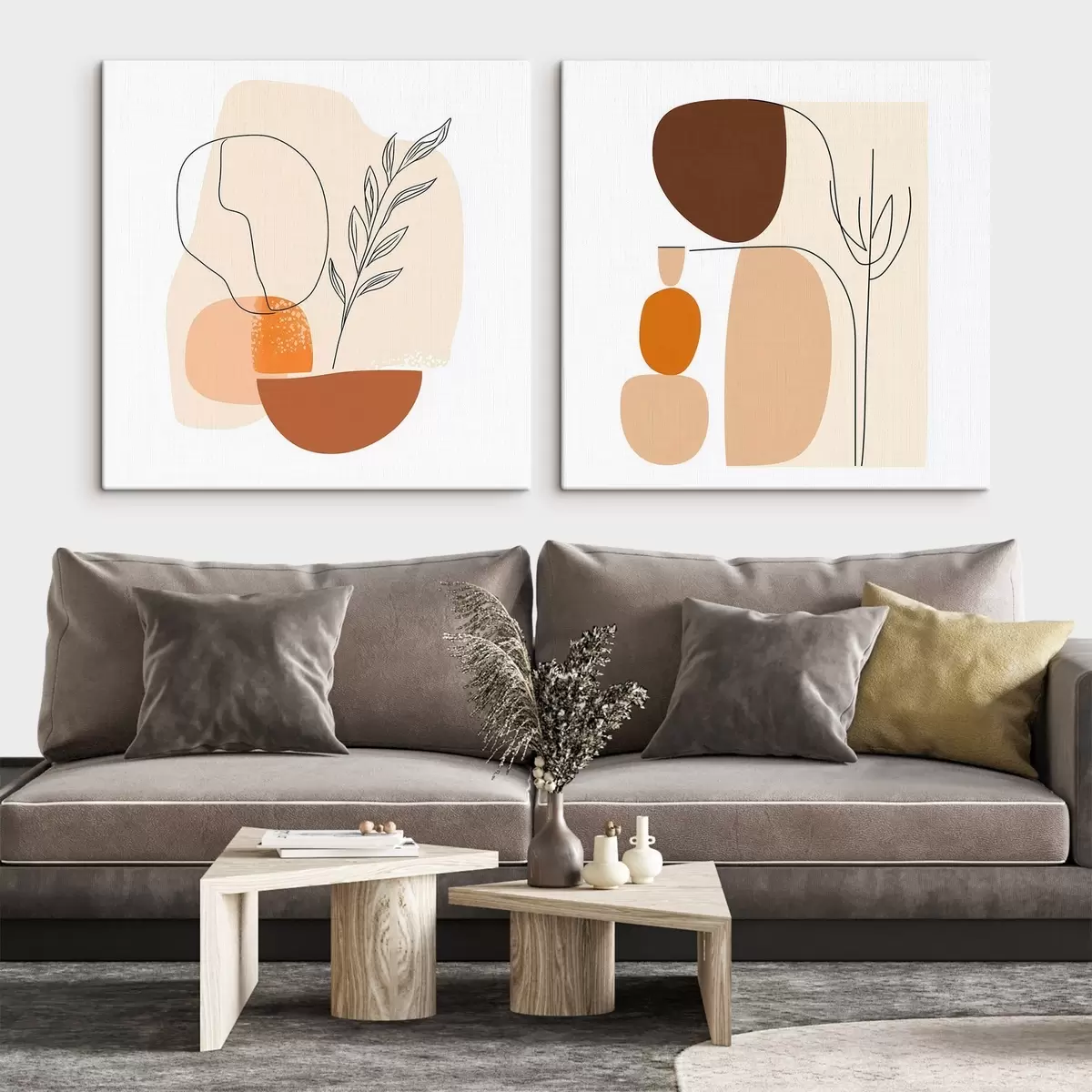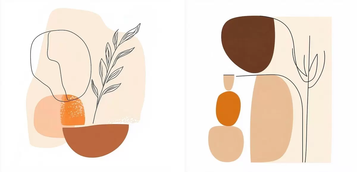 Vászonkép Absztrakt virágok meleg bézs-korall színvilágban: minimalista stílusú illusztráció Nr m30362