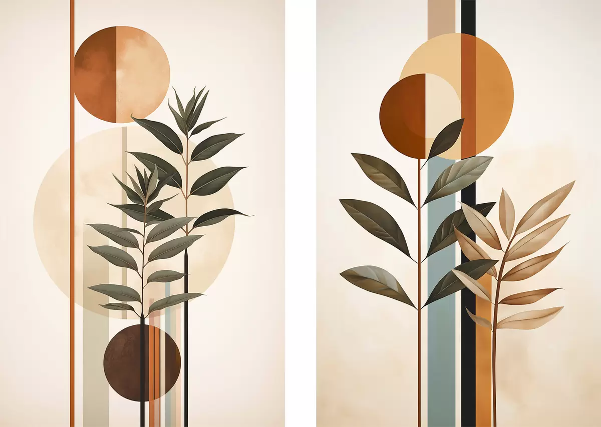 Vászonkép Absztrakt növények körökkel és vonalakkal Nr m30392