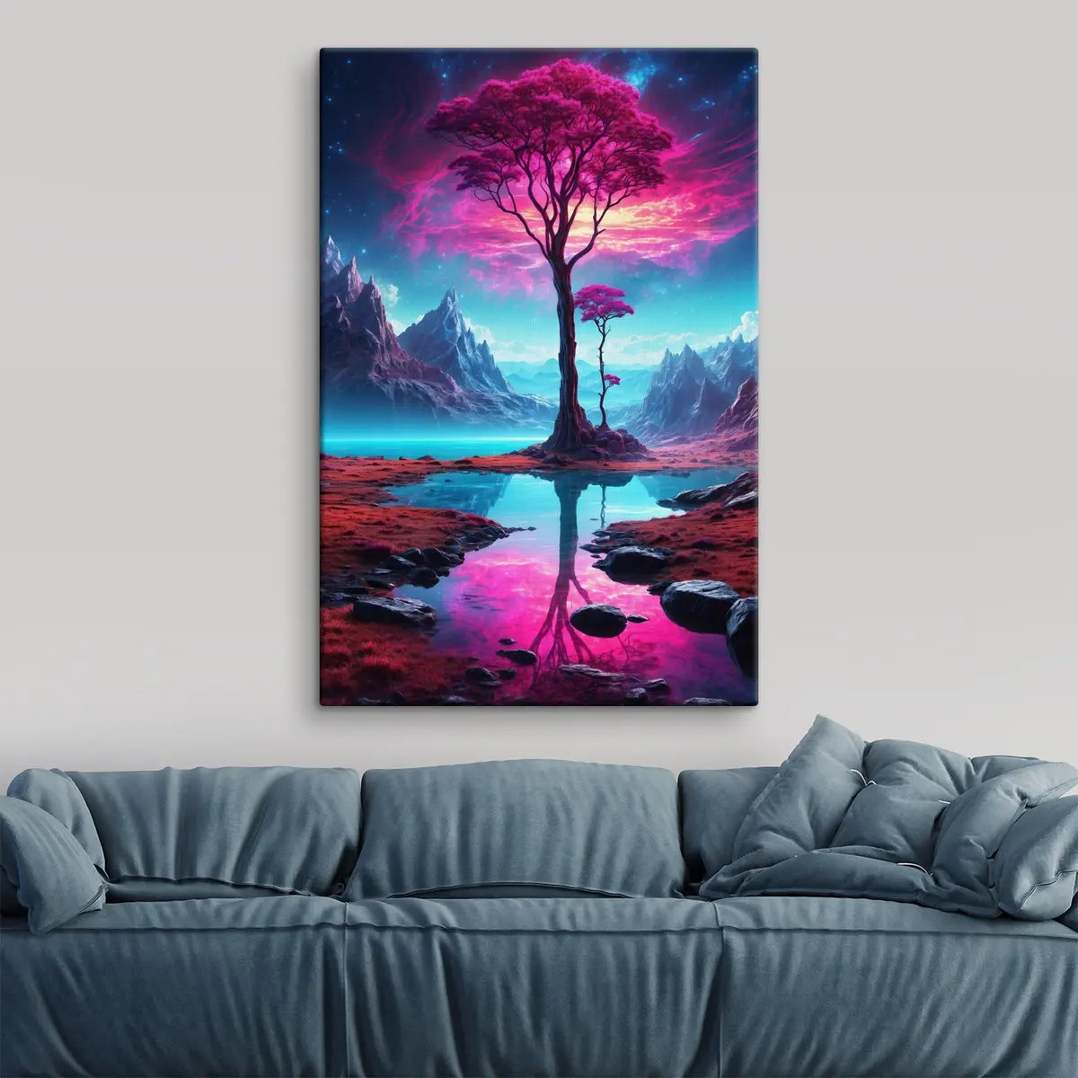 Vászonkép Egy fa a hegyek és a fantasztikus égbolt hátterében Nr s36445
