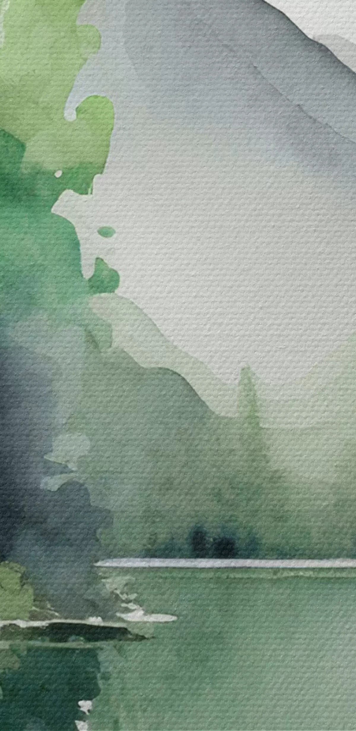 Vászonkép Akvarell tó és erdei táj, tavasz, lágy természetes zöld színek Nr s36503