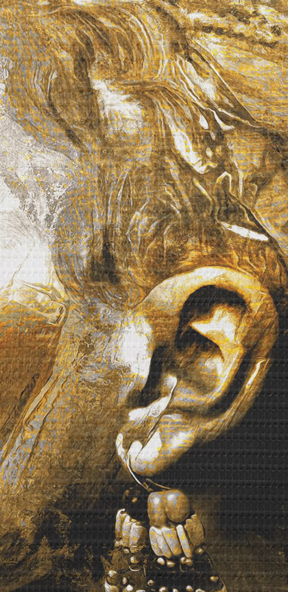 Ahhoz, hogy a vásznat a feszítőrúdra feszítsük anélkül, hogy a kép megsérülne, tükrözött képet használunk.