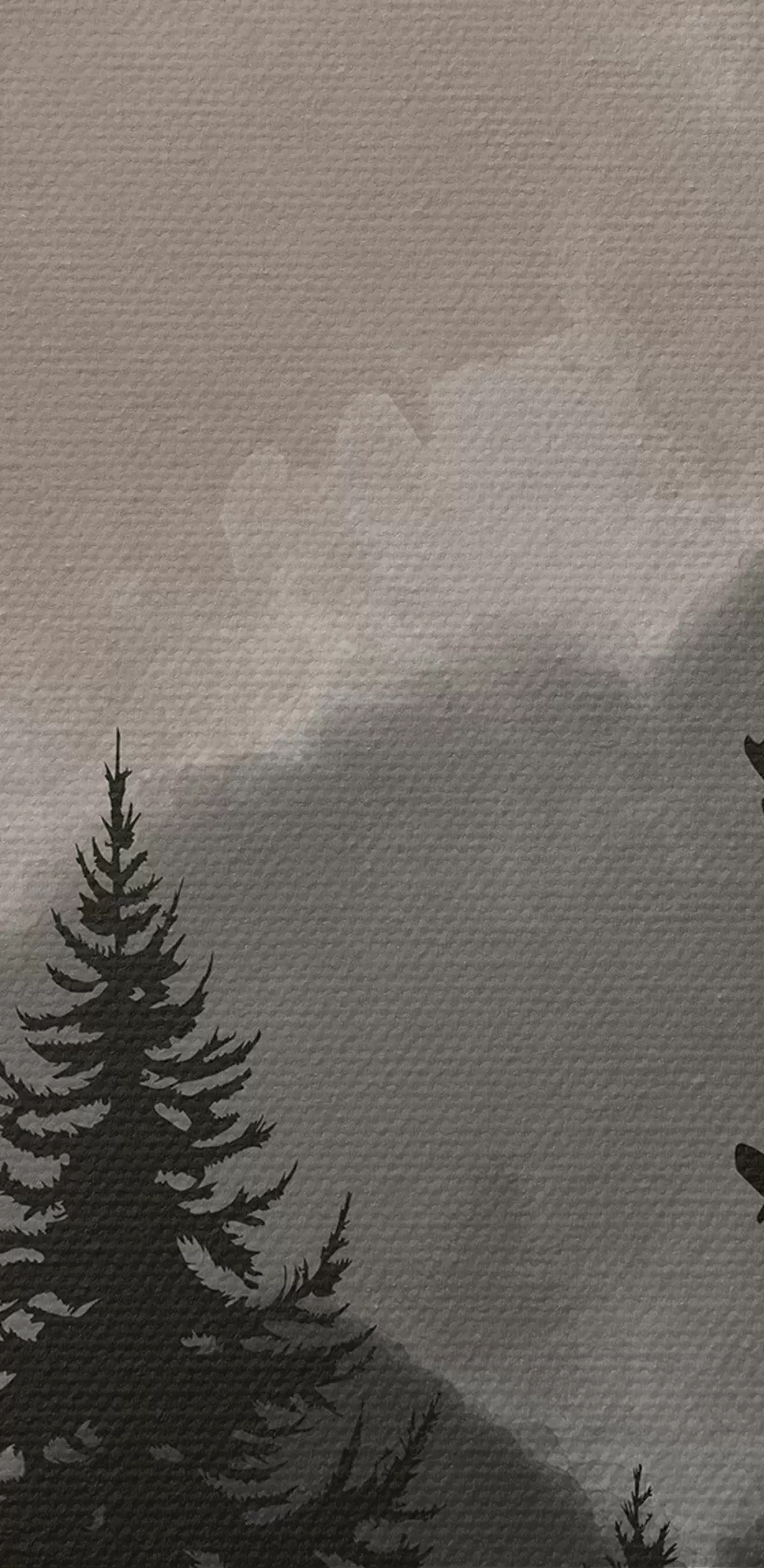 fotótapéta Hegyi táj fenyőfákkal akvarellben s37017v1