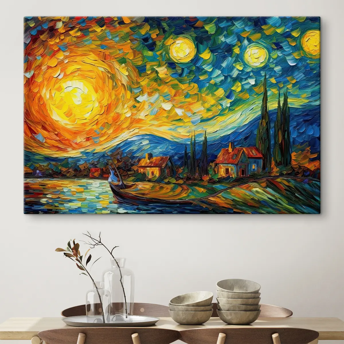 A képeket feszítőrúdra szerelve áruljuk - ez egy fakeret, amelyre a vászon van feszítve. Ezt a képet nem kell bekeretezni; közvetlenül a falra is felakaszthatja.