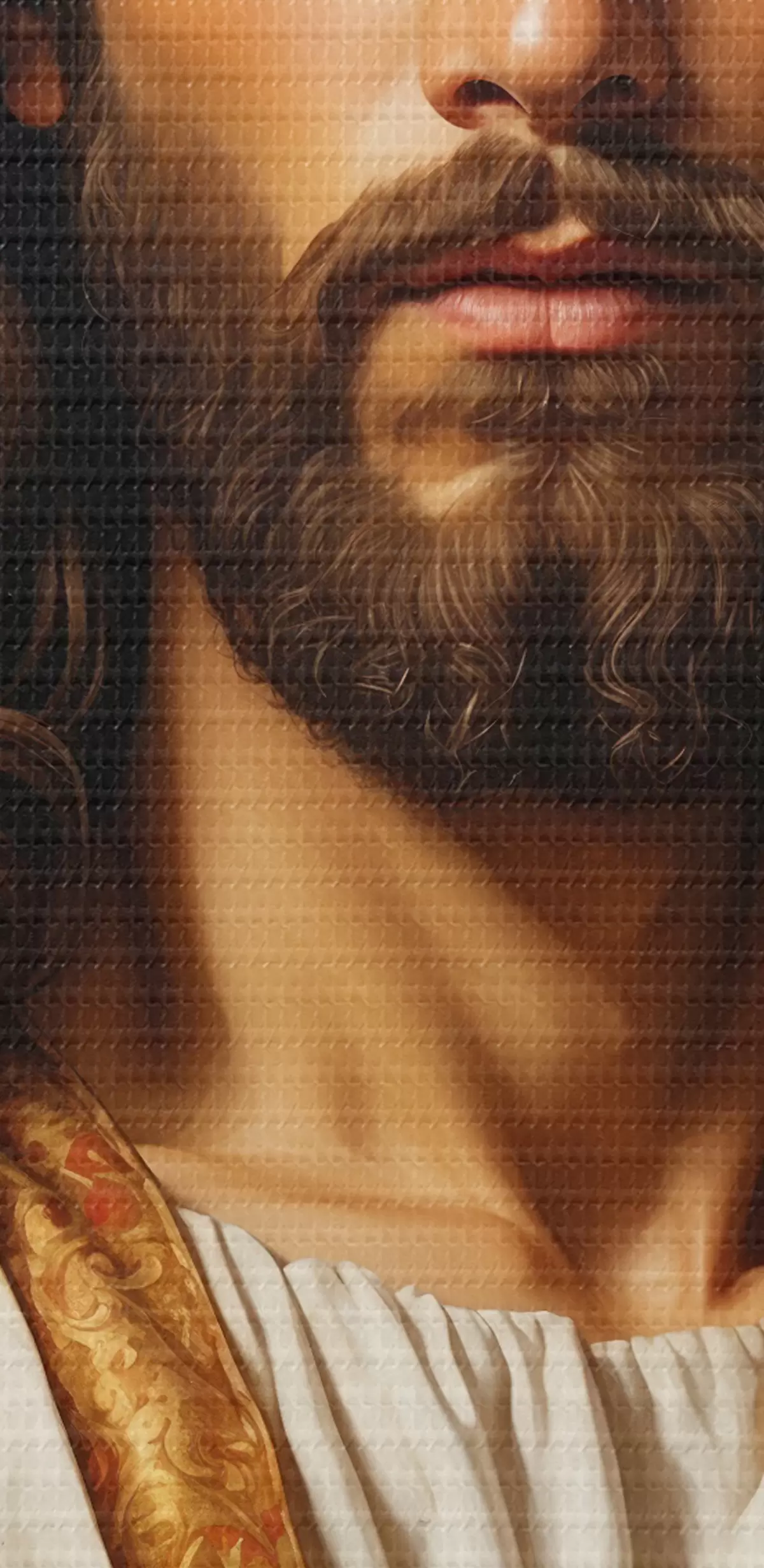 Ahhoz, hogy a vásznat a feszítőrúdra feszítsük anélkül, hogy a kép megsérülne, tükrözött képet használunk.