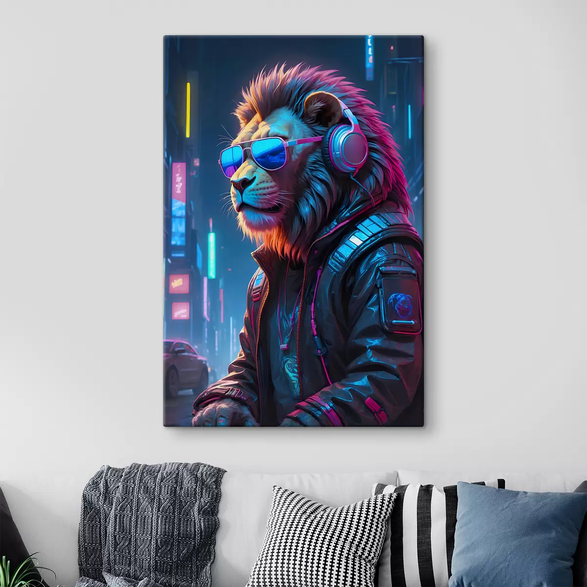 Vászonkép Oroszlán a neon város hátterében Nr s38169